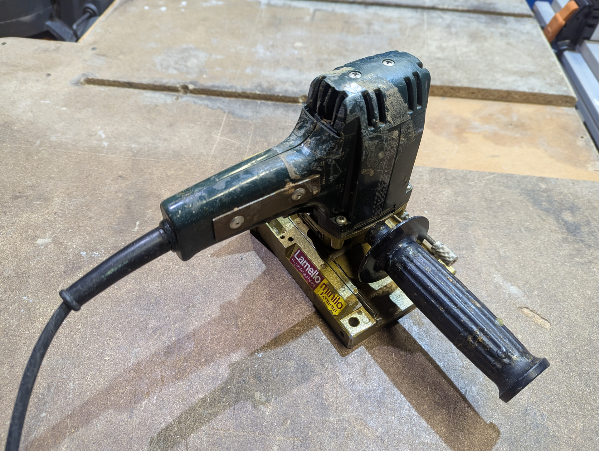 Lo que veo es que le falta la guía …..o este modelo igual no. Llevaba, tengo bastante antigua que no lleva y para mí es imprescindible,ya que suelo trabajar con la guía sobre la madera como referencia sin la guía tienes que trabajar con la base como referencia y tendrás que buscar galgas de diferentes grosores para posicionar los cortes.