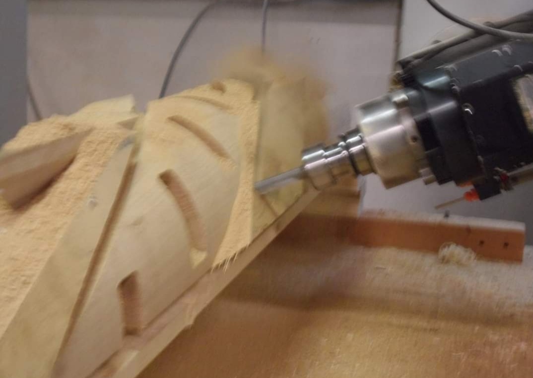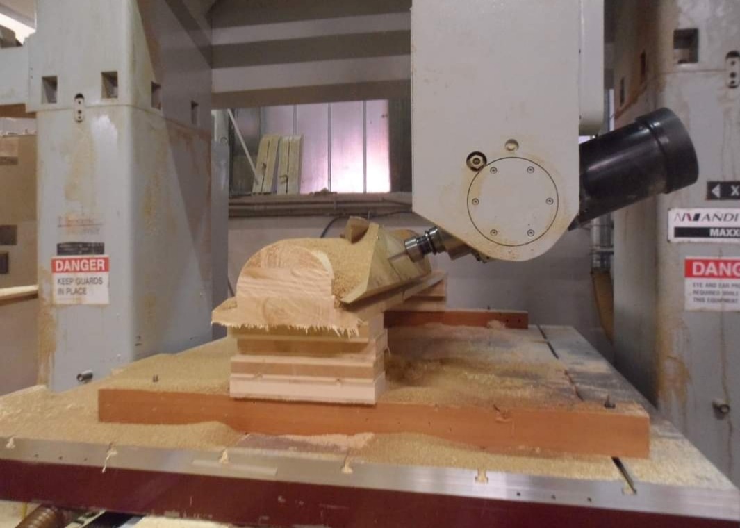 Tiene dos cnc, uno digamos que es un cnc tradicional muy robusto y potente, 4 ejes mas grupo de taladro, en el que hace trabajos como corte de peldaños, cajeados de zancas etc