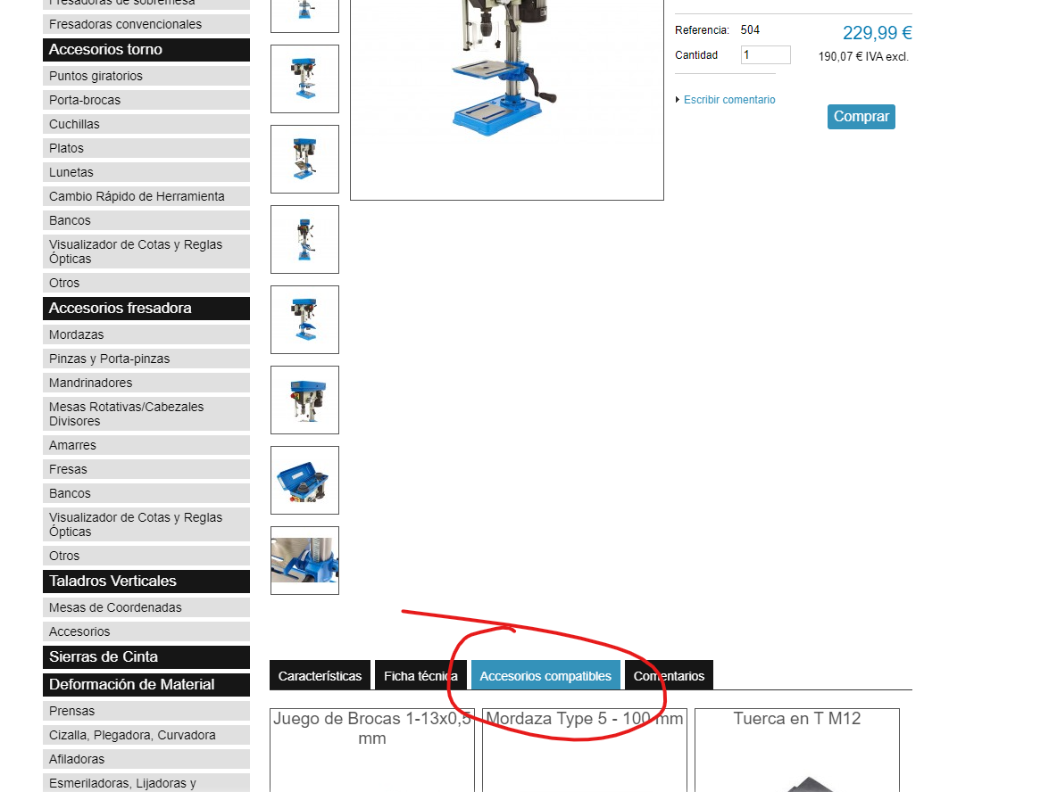 Pesa un quintal! y esta es de las baratas. Cuando entras a ver el taladro, abajo hay una pestaña que pone “accesorios”, esos son los accesorios compatibles con el taladro.