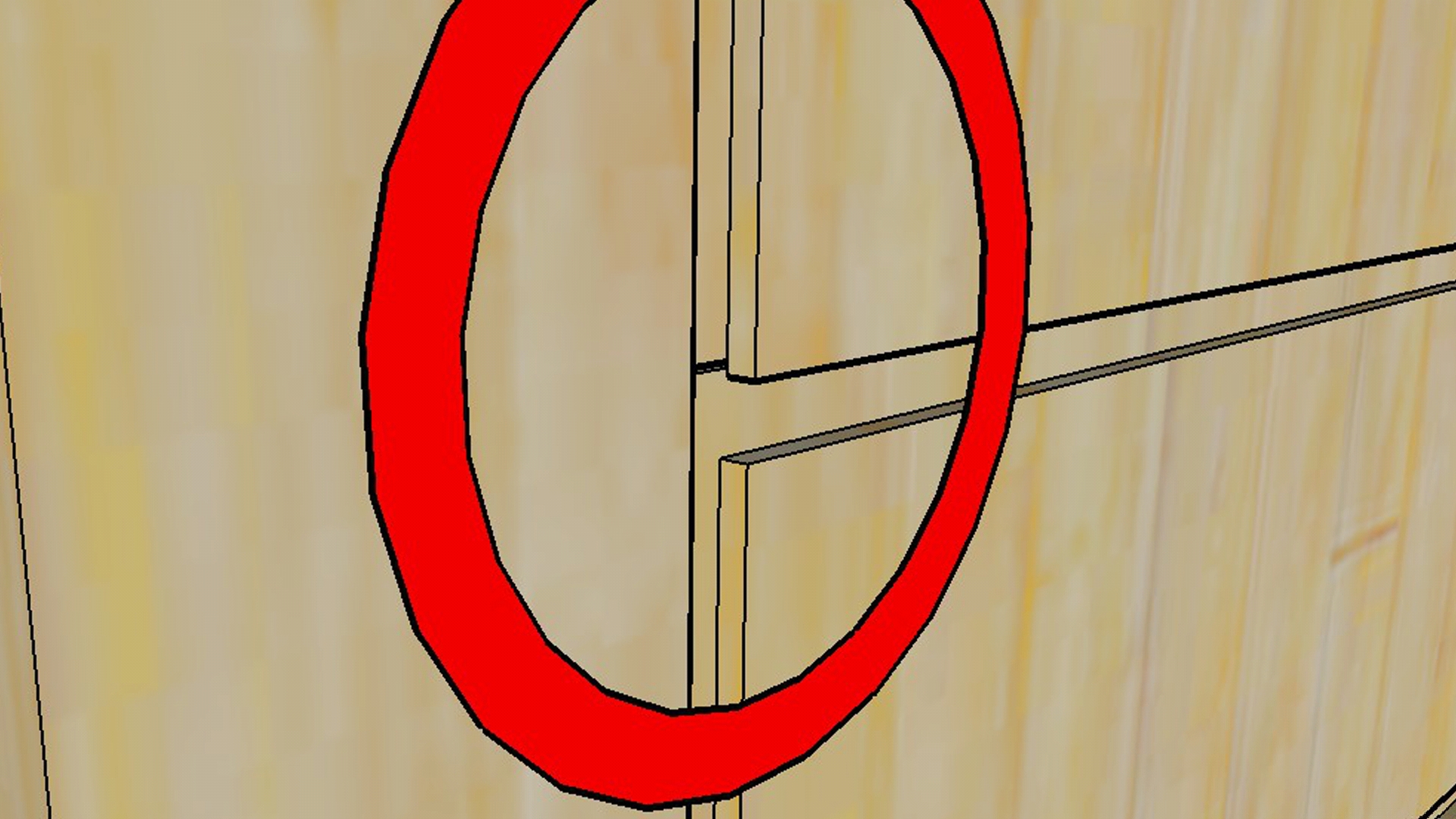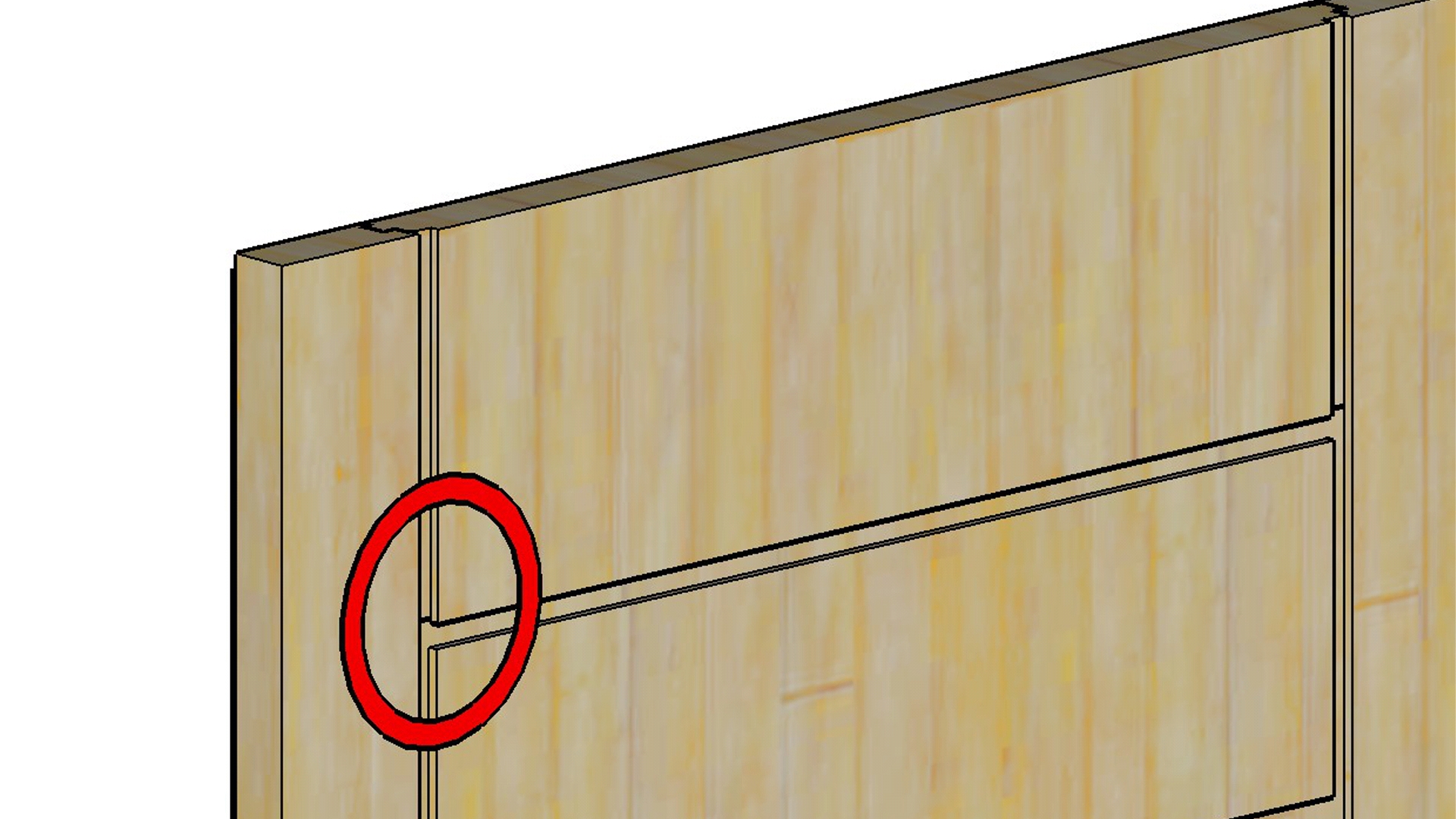 de esta manera que se me ocurre, aparece un pequeño “gap” que no me gusta, el círculo rojo, visible en el rebaje entre el entrepaño y el bastidor