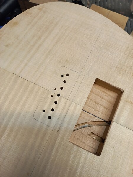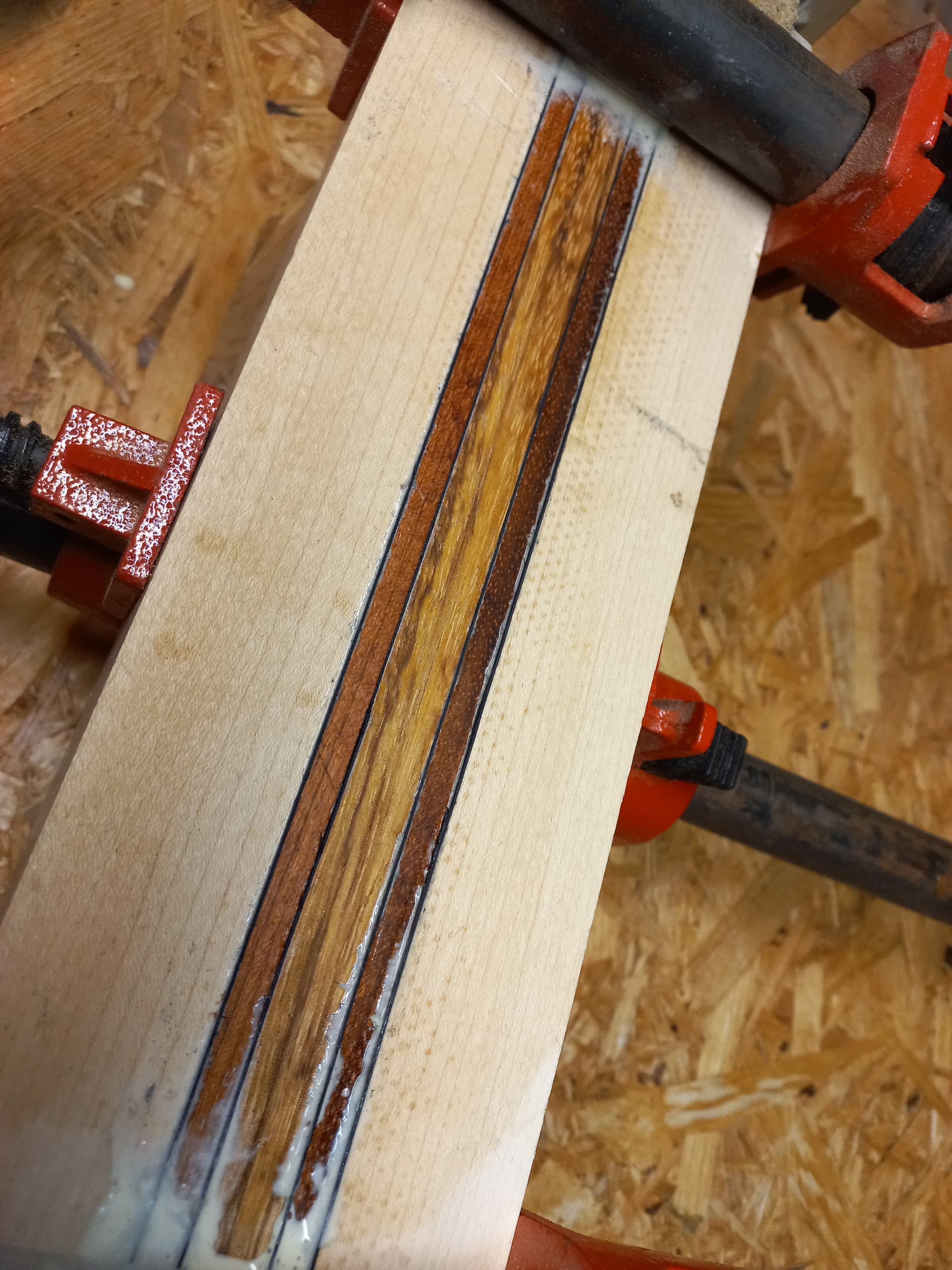 Sobre el cuerpo se encola la tapa, que suele ser de alguna madera mas bonita, en este caso arce frisse.