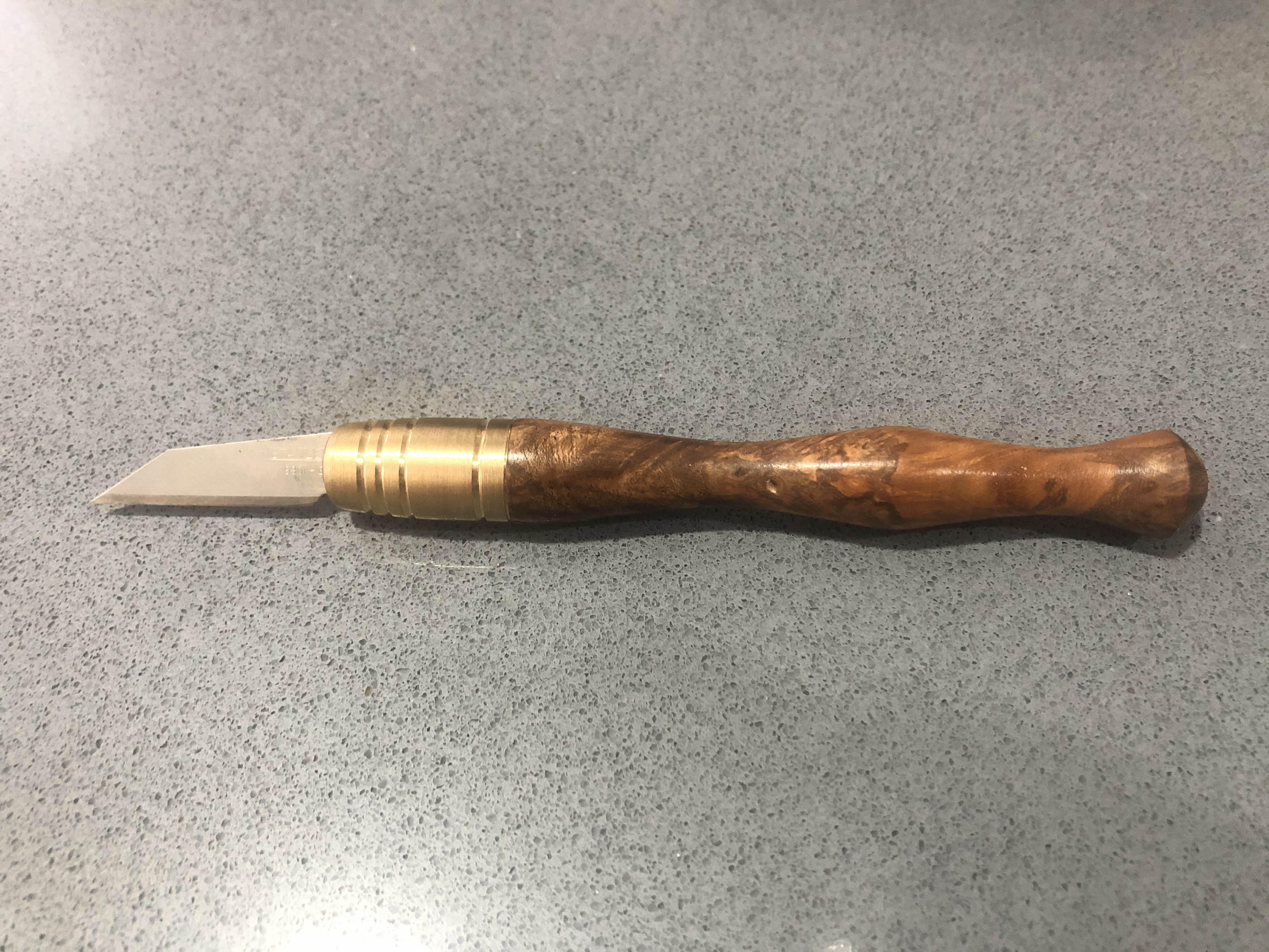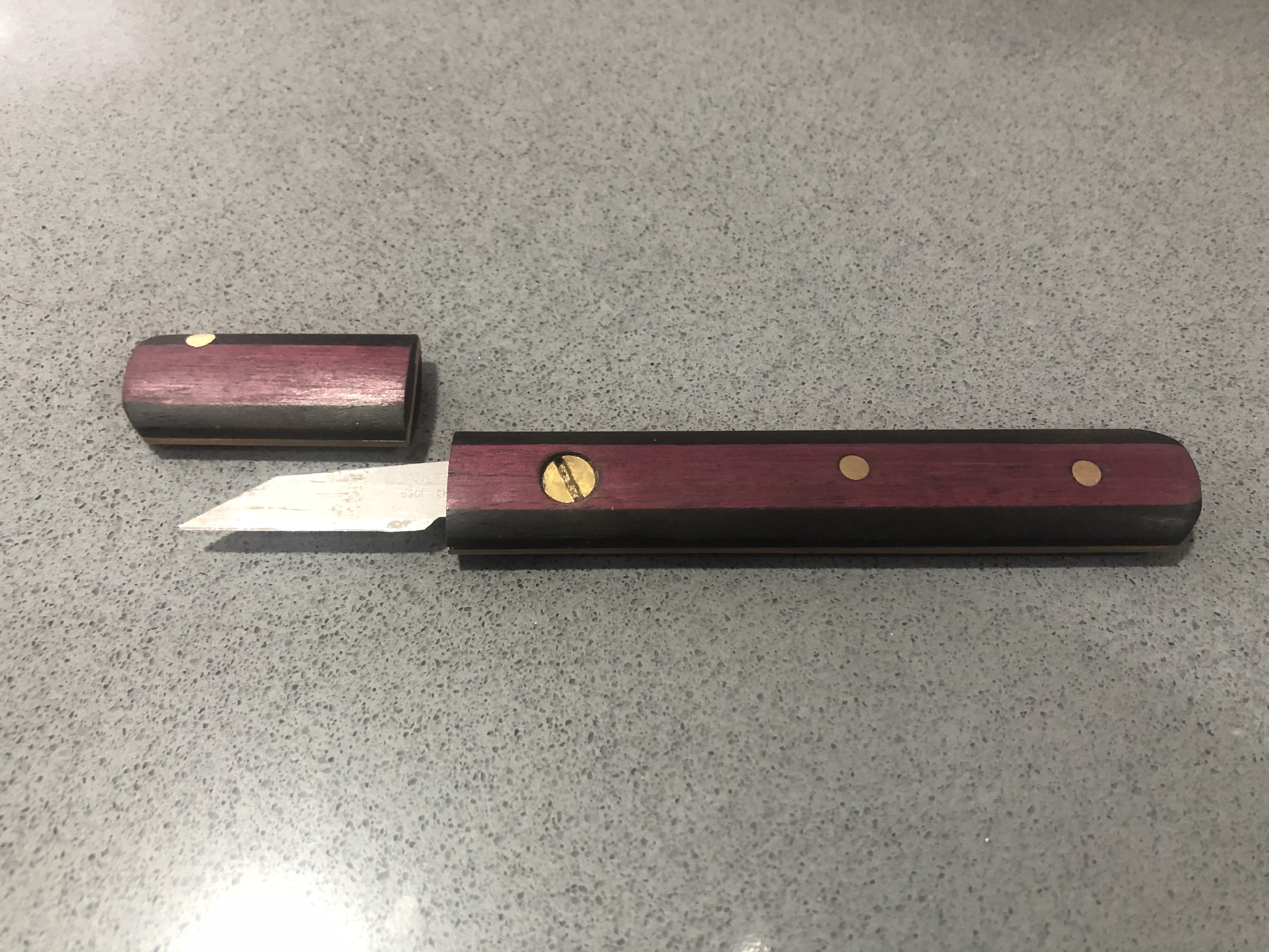 Un cuchillo de marcar de ébano, Nazareno y latón.