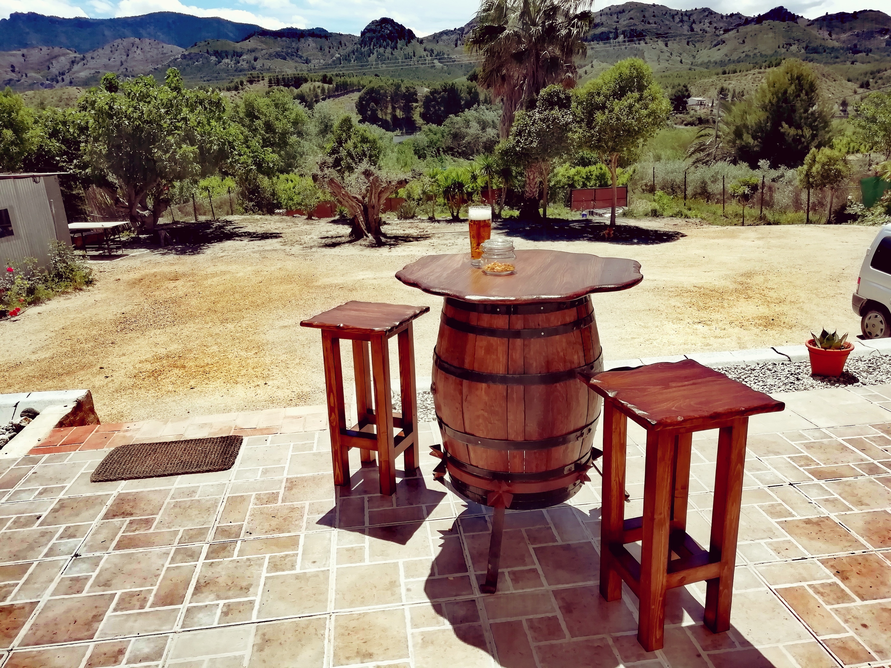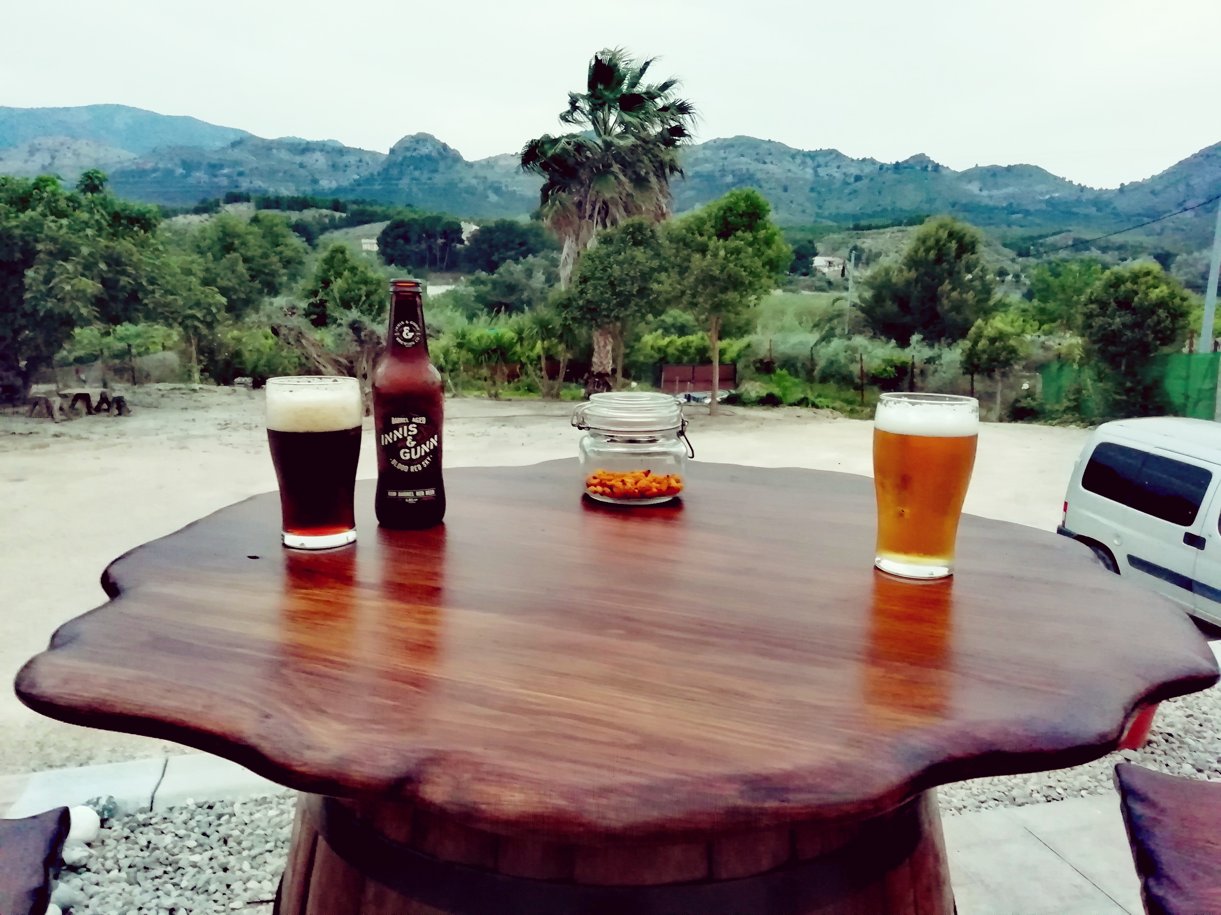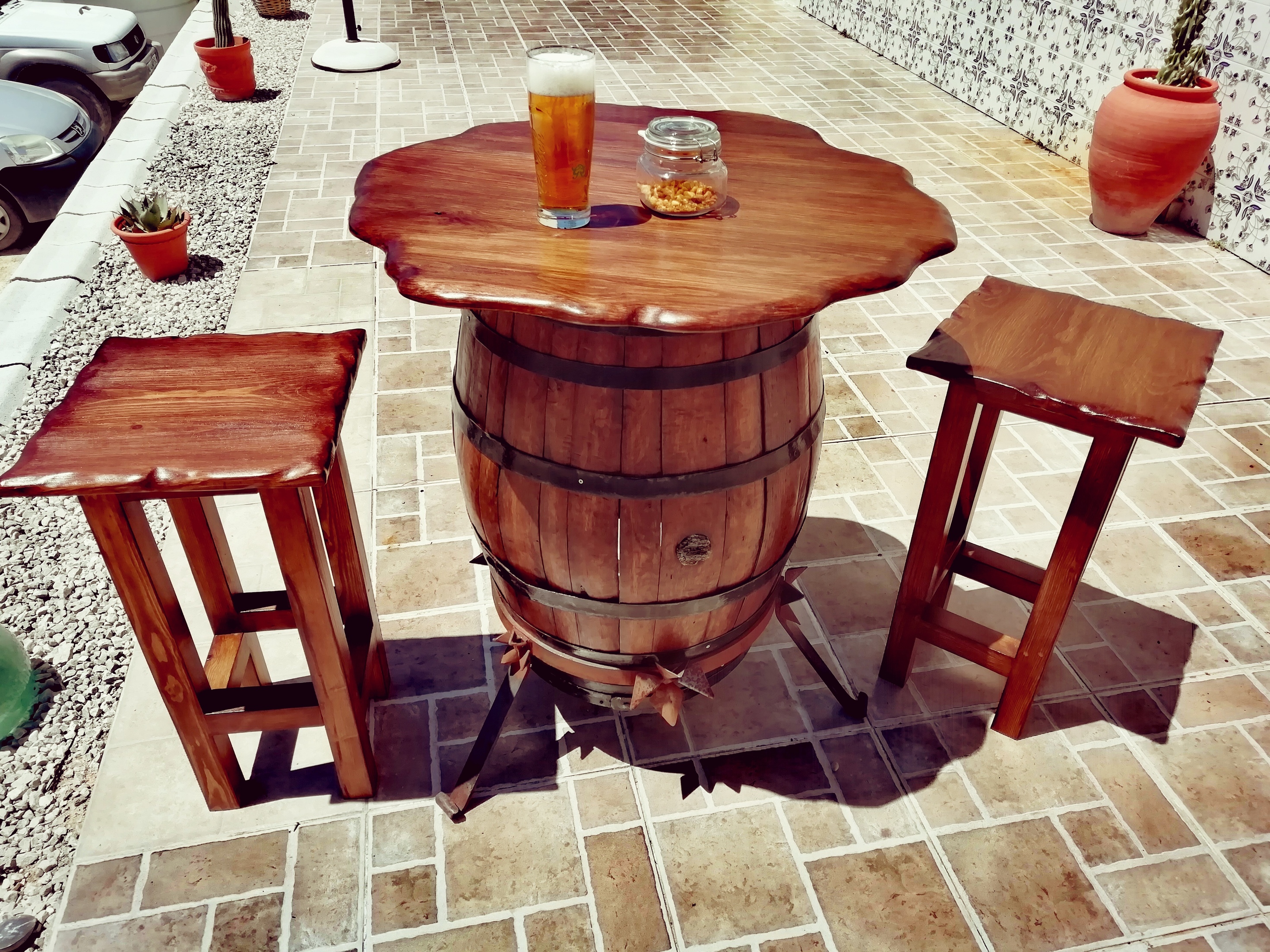 Paso unas fotejos de un par de taburetes y un tonel en modo de mesa para tomar las cervezas un poco más elegantemente.