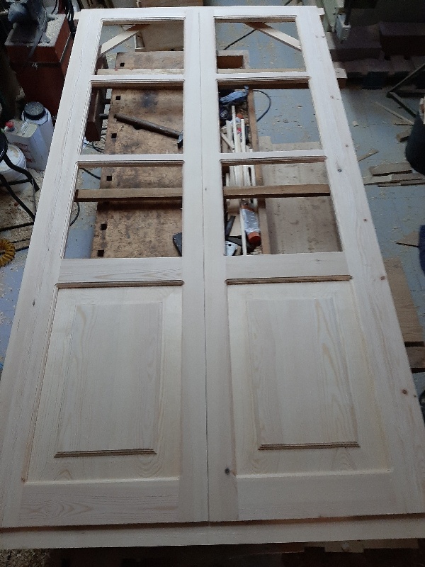 son dos puertas cristalera para un armario del estilo que hay por aqui en las casas antiguas,armarios empotrados en las paredes que suelen ser muy anchas de entre 50 y 90 cm de ancho y donde se guardaba la poca vajilla que se tenia.Estas son para sustituir unas viejas que estaban muy deterioradas.
