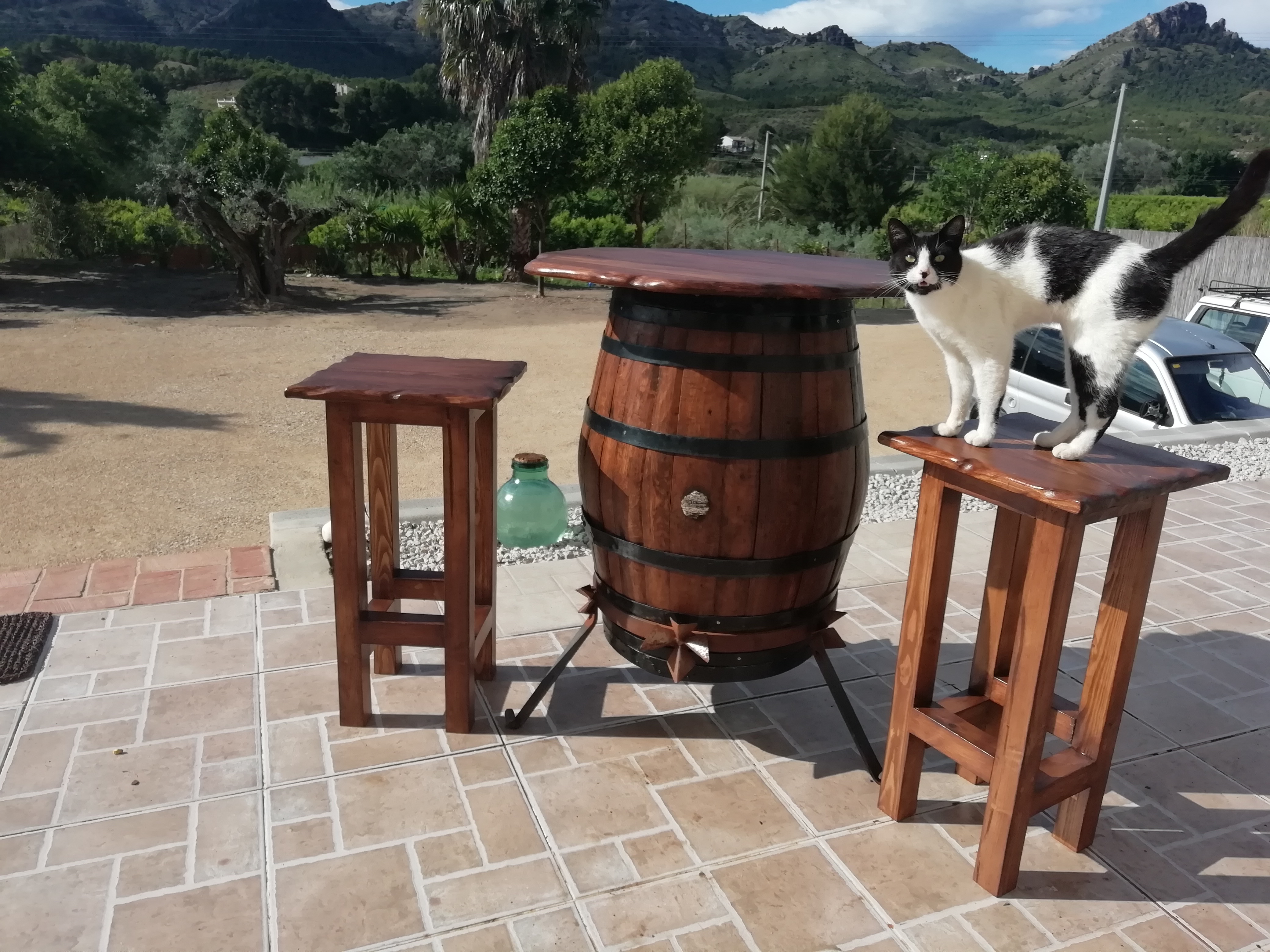 El acabado es un lasur color teka. La verdad que me ha gustado como ha quedado. No tengo fotos del tonel de como estaba, pero vamos de pena, para tirarlo…