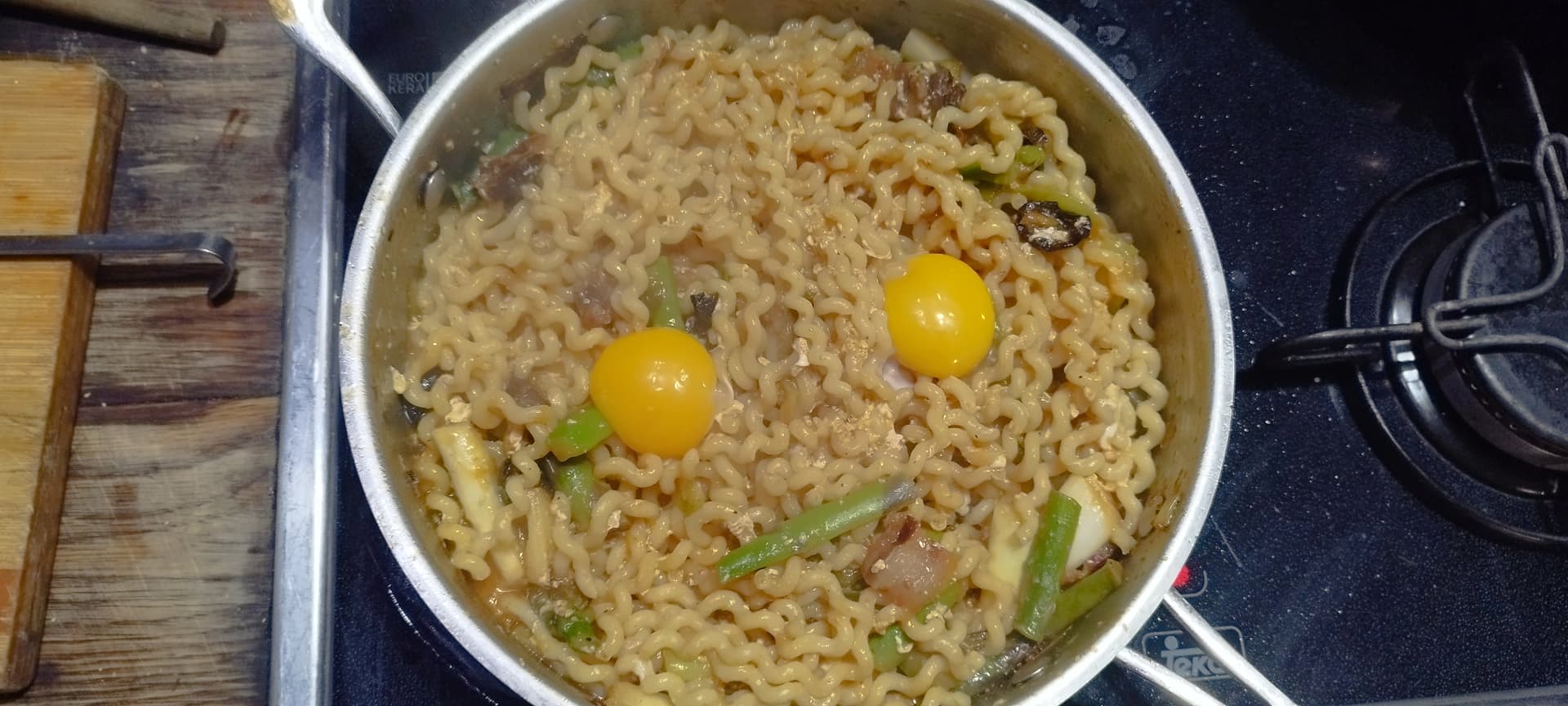 suelo hacer algo parecido pero mas simplón con fideos tirabuzón, pero a la manteca y trocitos de panceta y esparragos y con dos huevos fritos arriba (tambien fritos en manteca)