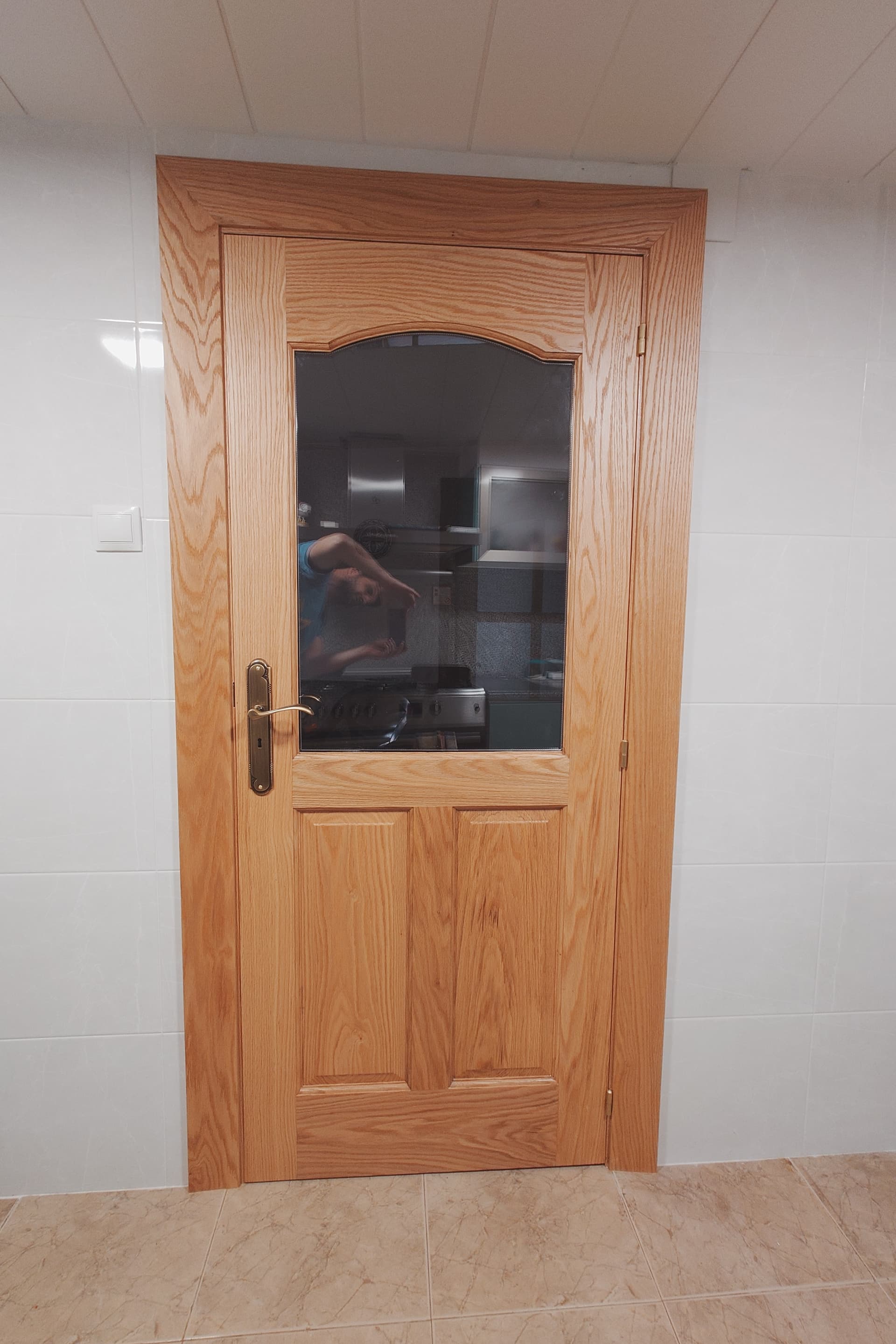 Bonita puerta y bien acabada, dejando ver la veta de la madera de roble.