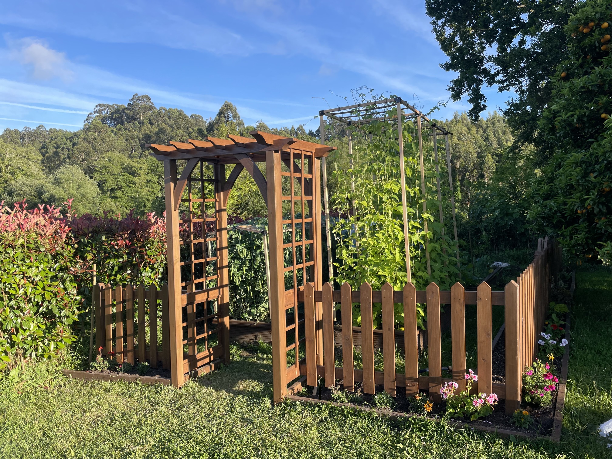 Mes y medio casi exacto desde que empecé a hacer la zanja para el bancal de la valla hasta hoy. Pero cuando vas a ratos sueltos, pues se tarda mucho