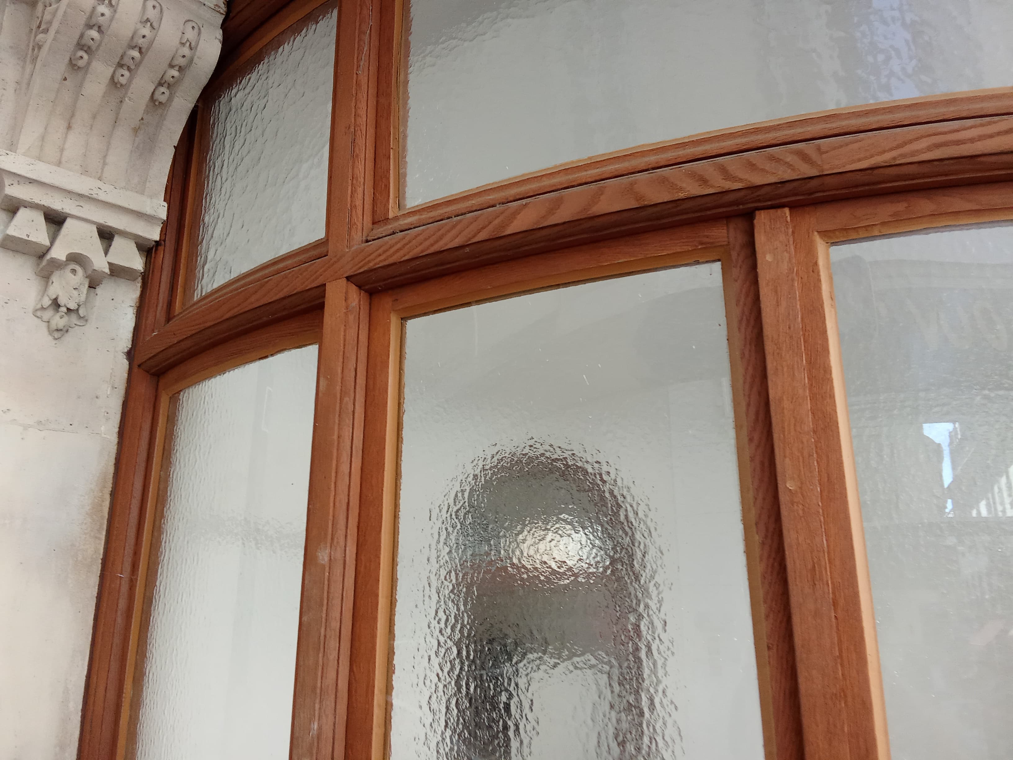 En estas fotos se ve que los cristales no se sujetan con junquillos, solo con silicona, hace años reformamos un chalet, las ventanas eran antiguas, antiguas, vino una empresa que está especializada en reformar carpinterías antiguas y colocaron los vidrios de la misma forma