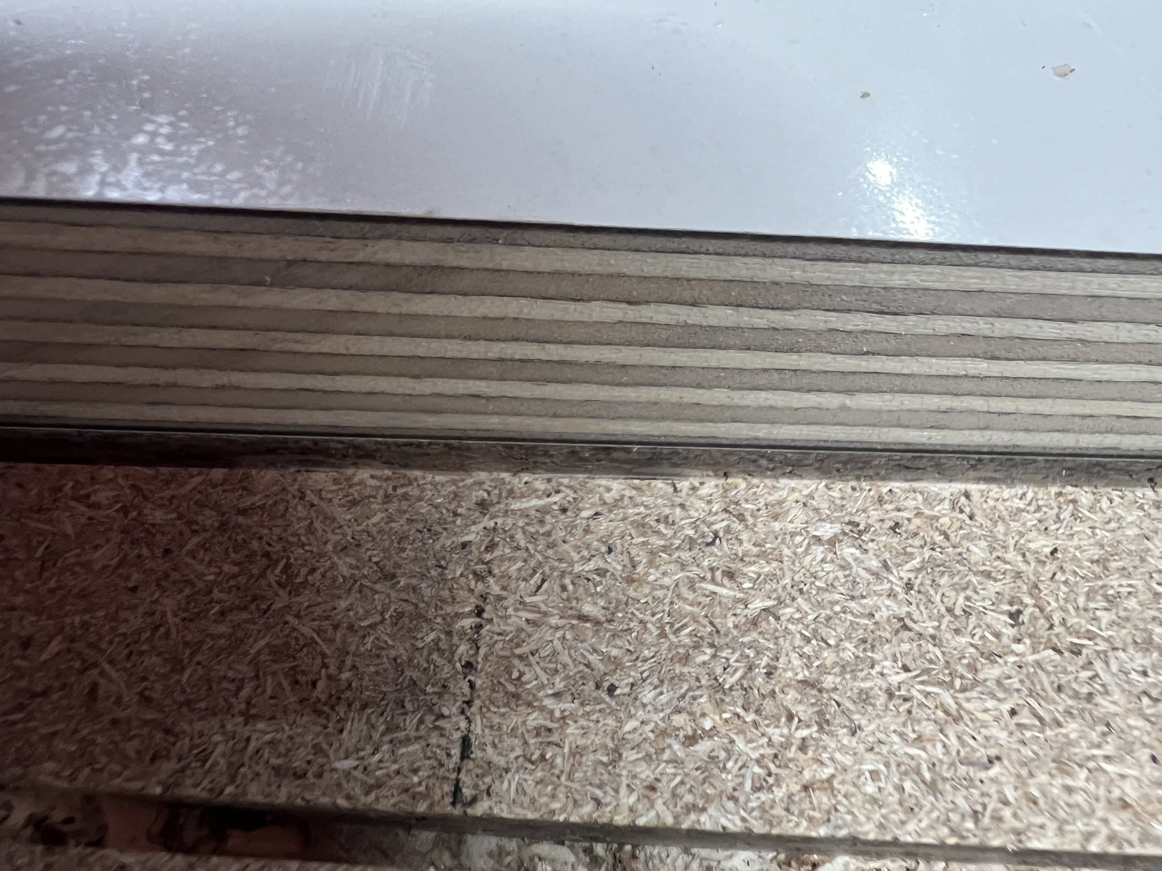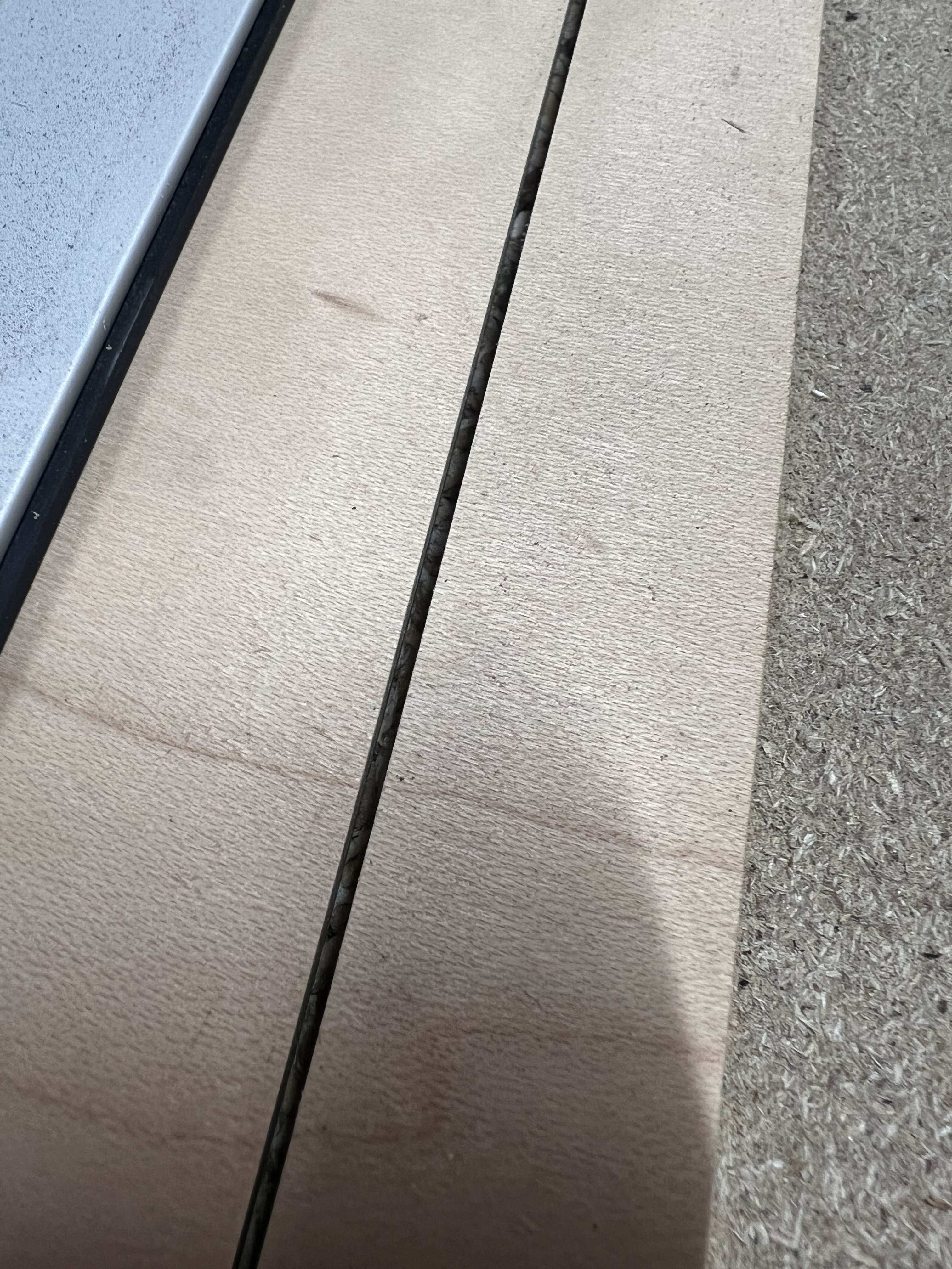 Los cortes han sido sobre contrachapado con caras de maple y contrachapado con HPL (se ve rara la cara por que tiene film protector)