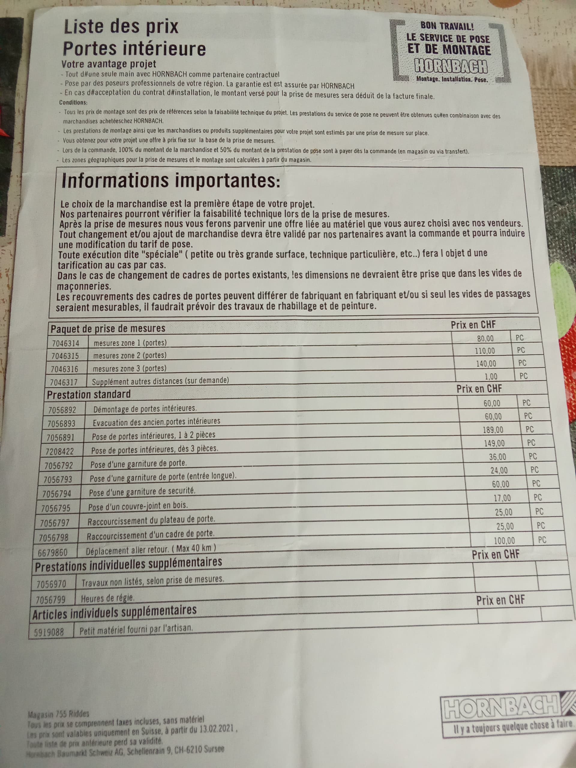 Esta es la lista de precios de unos almacenes similares a Leroy Merlín, es de puertas de interior y tiene algún tiempo,