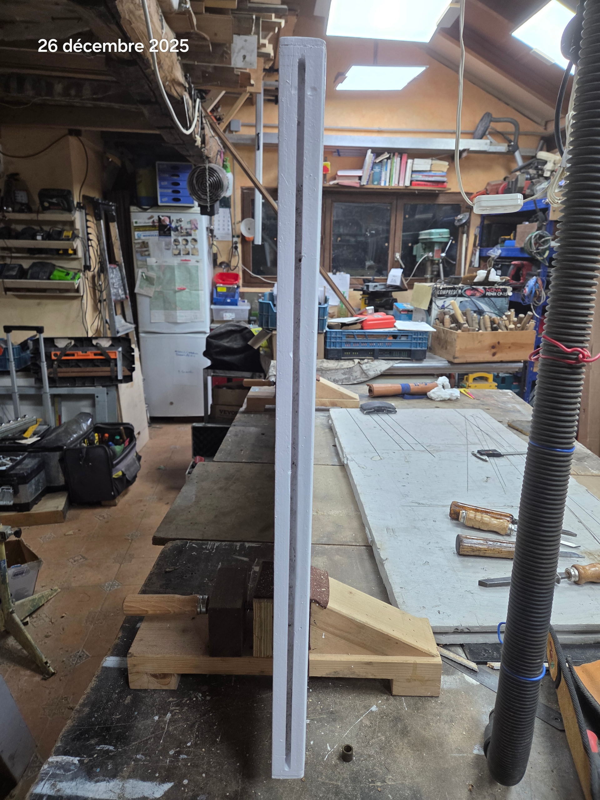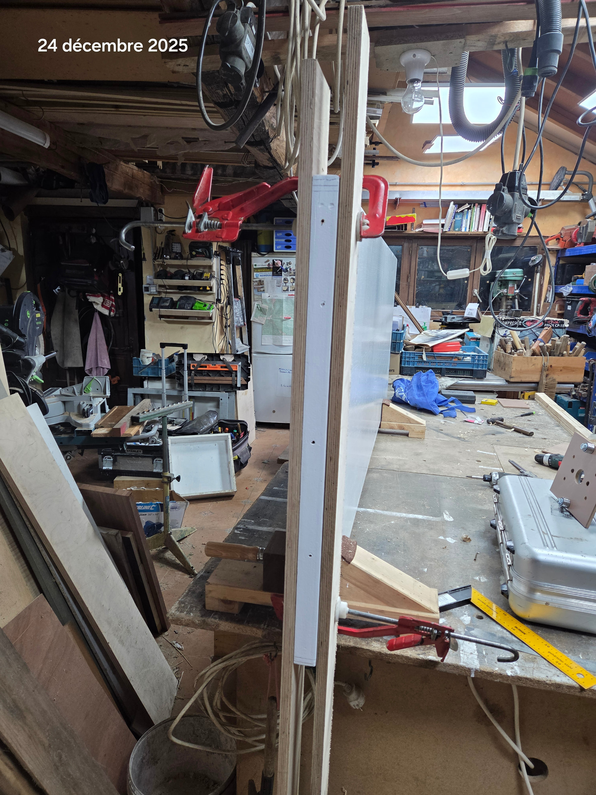 Un día de navidad, aburrido, tenía que hacer una,ranura en el centro del canto de,abajo de una puerta para colgarla.