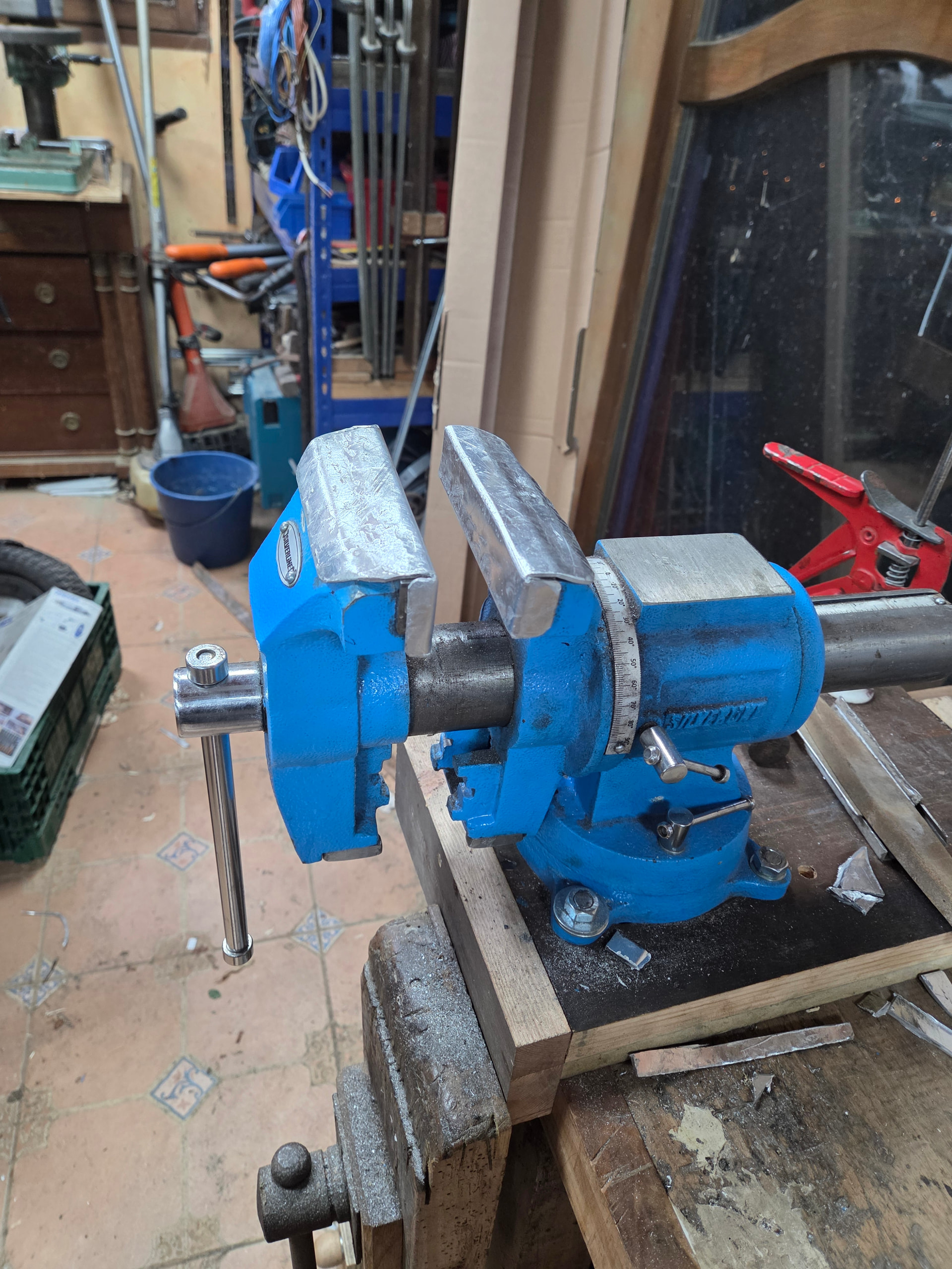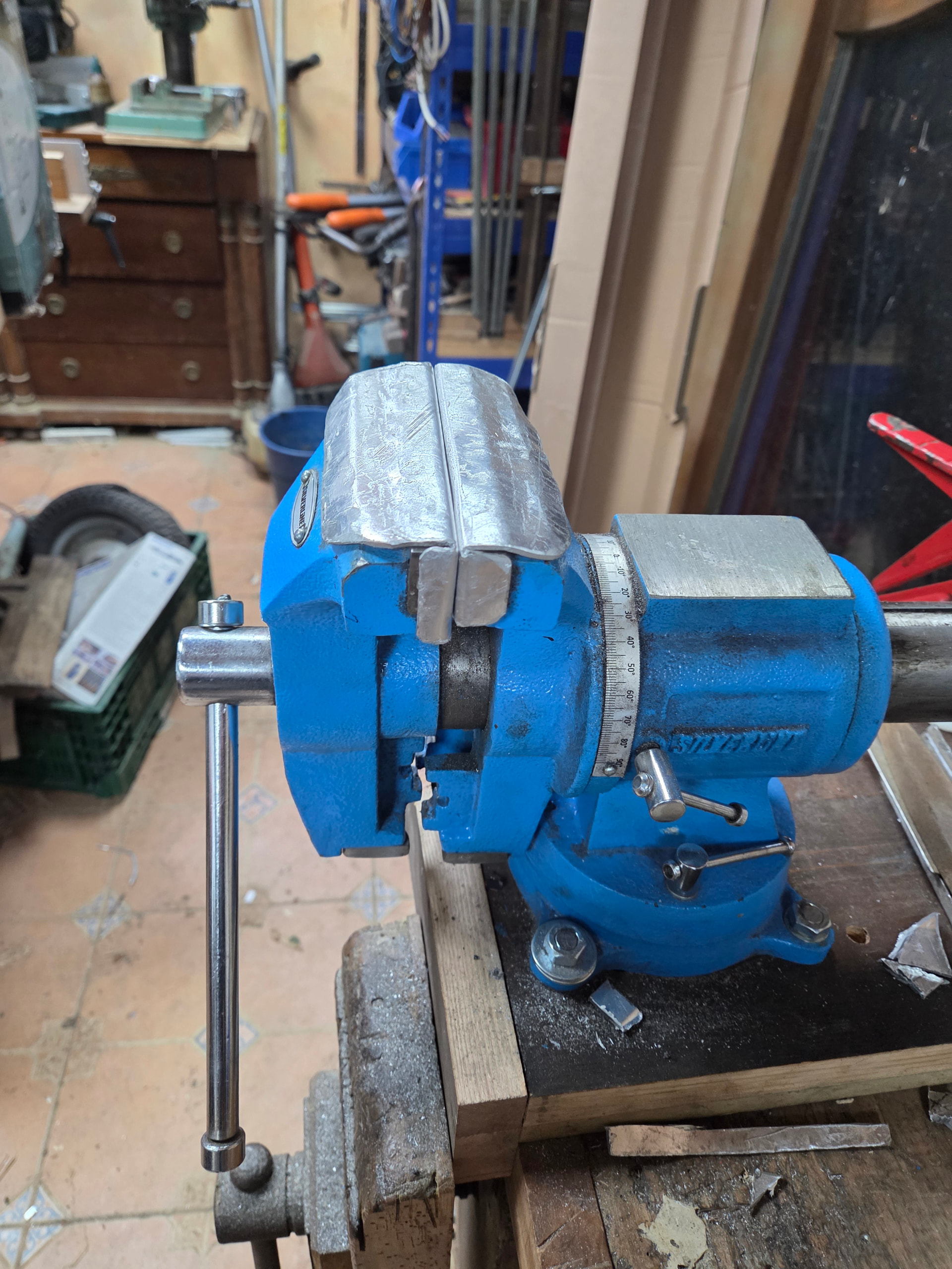 Yo en su día usaba mucho el tornillo de banco para cosas delicadas de metal y lo que hacía era usar latas de aluminio,sacaba láminas y le tenía un forro hecho para no marcar