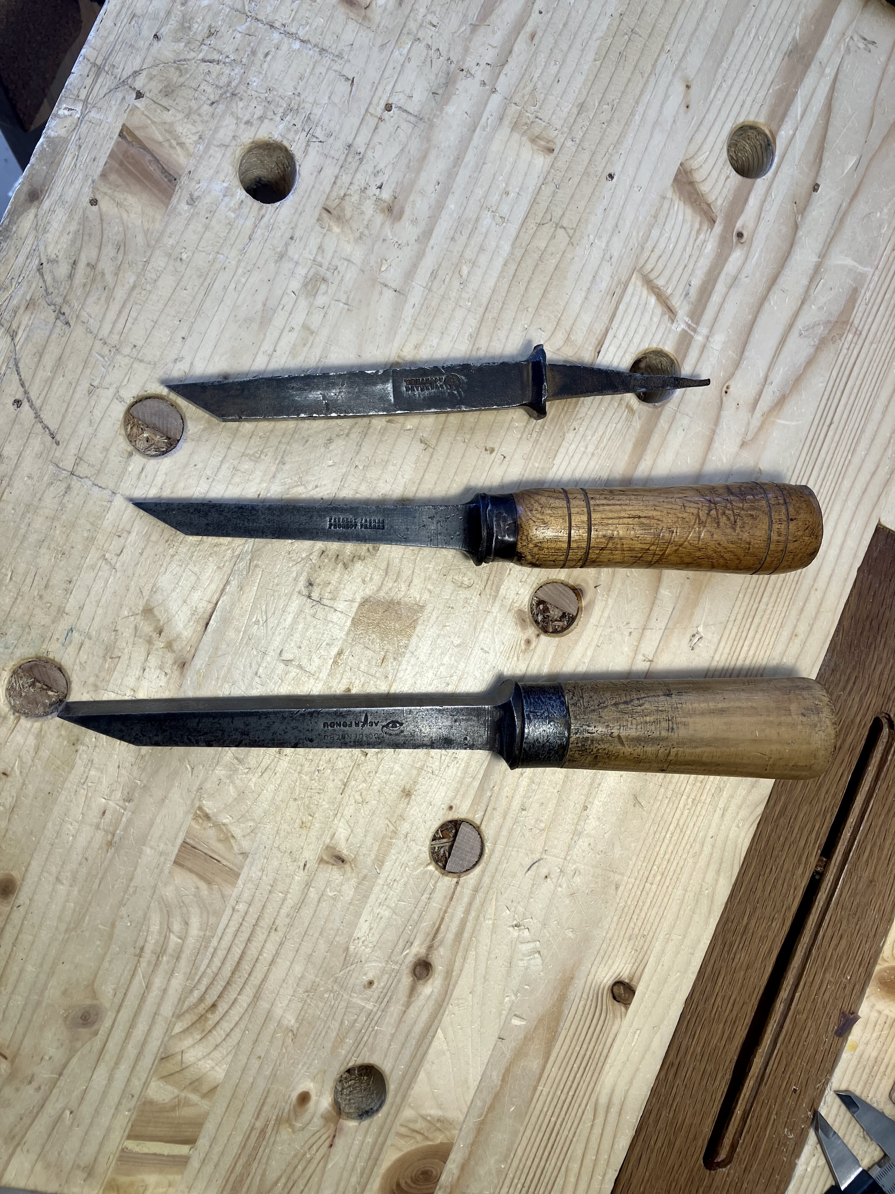 Empezando la restauración de las herramientas viejas que compré en Francia. La madera está en el congelador, mientras tanto miro los hierros.