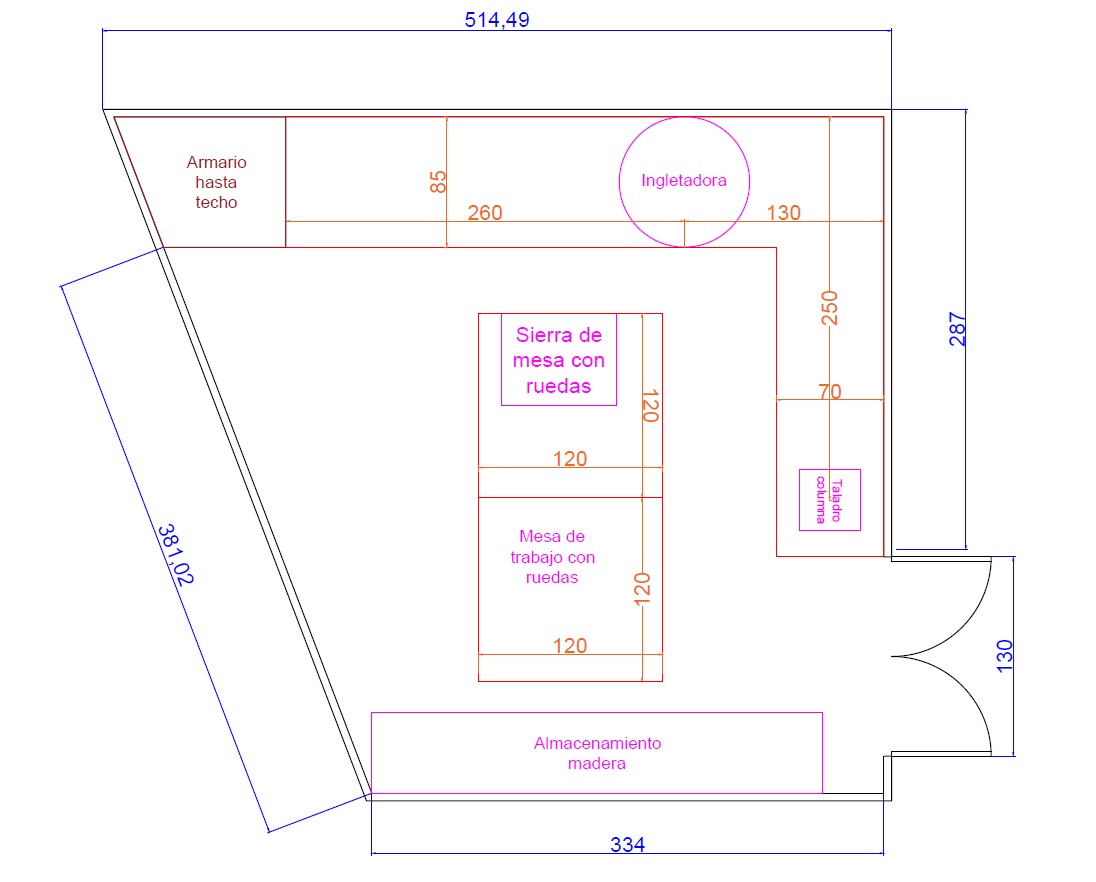Hola, estoy diseñando mi nuevo taller en el sótano de mi casa donde me gusta hacer muebles domésticos (armarios pequeños, consolas, comodas, mesas, etc.).