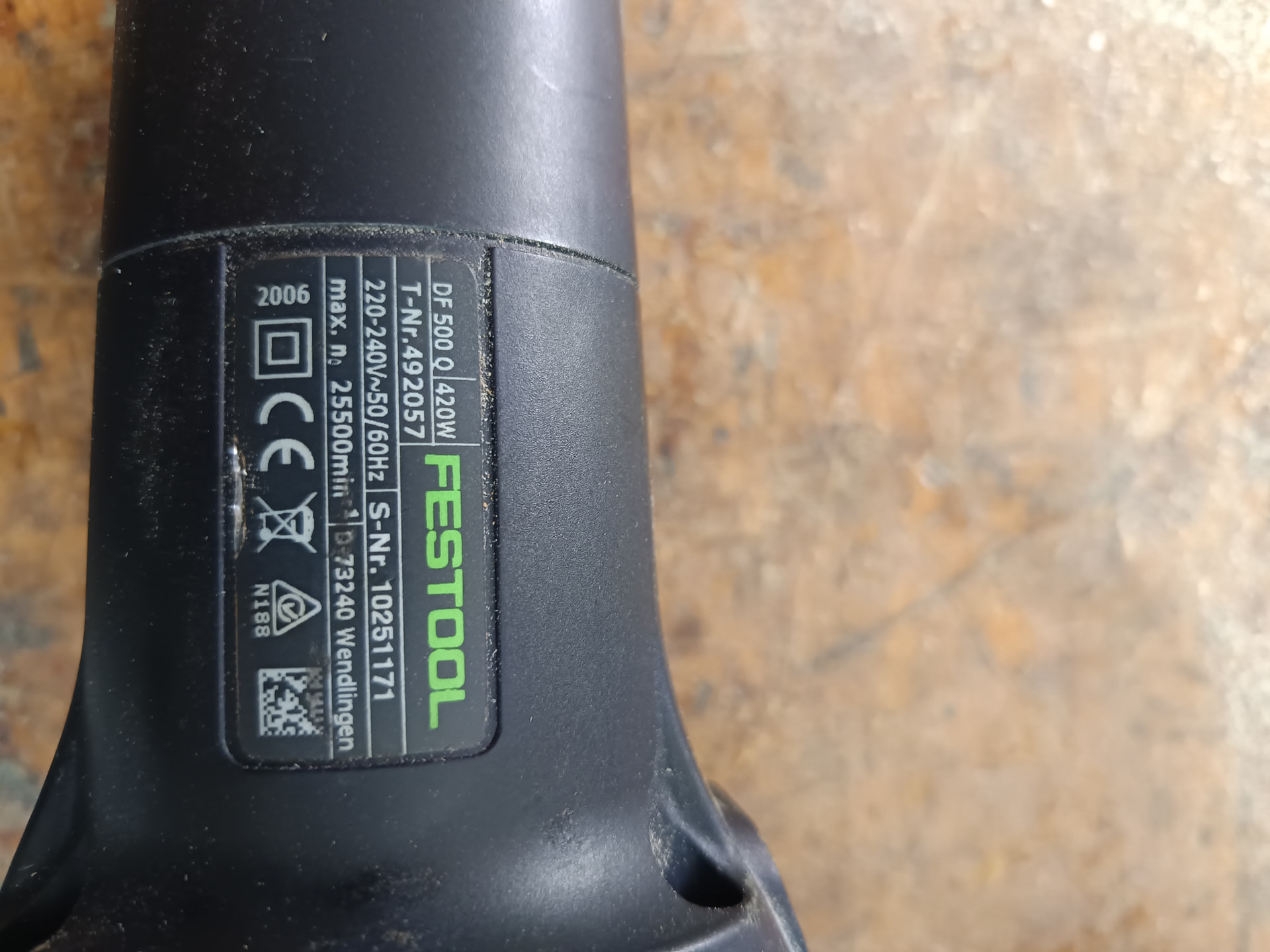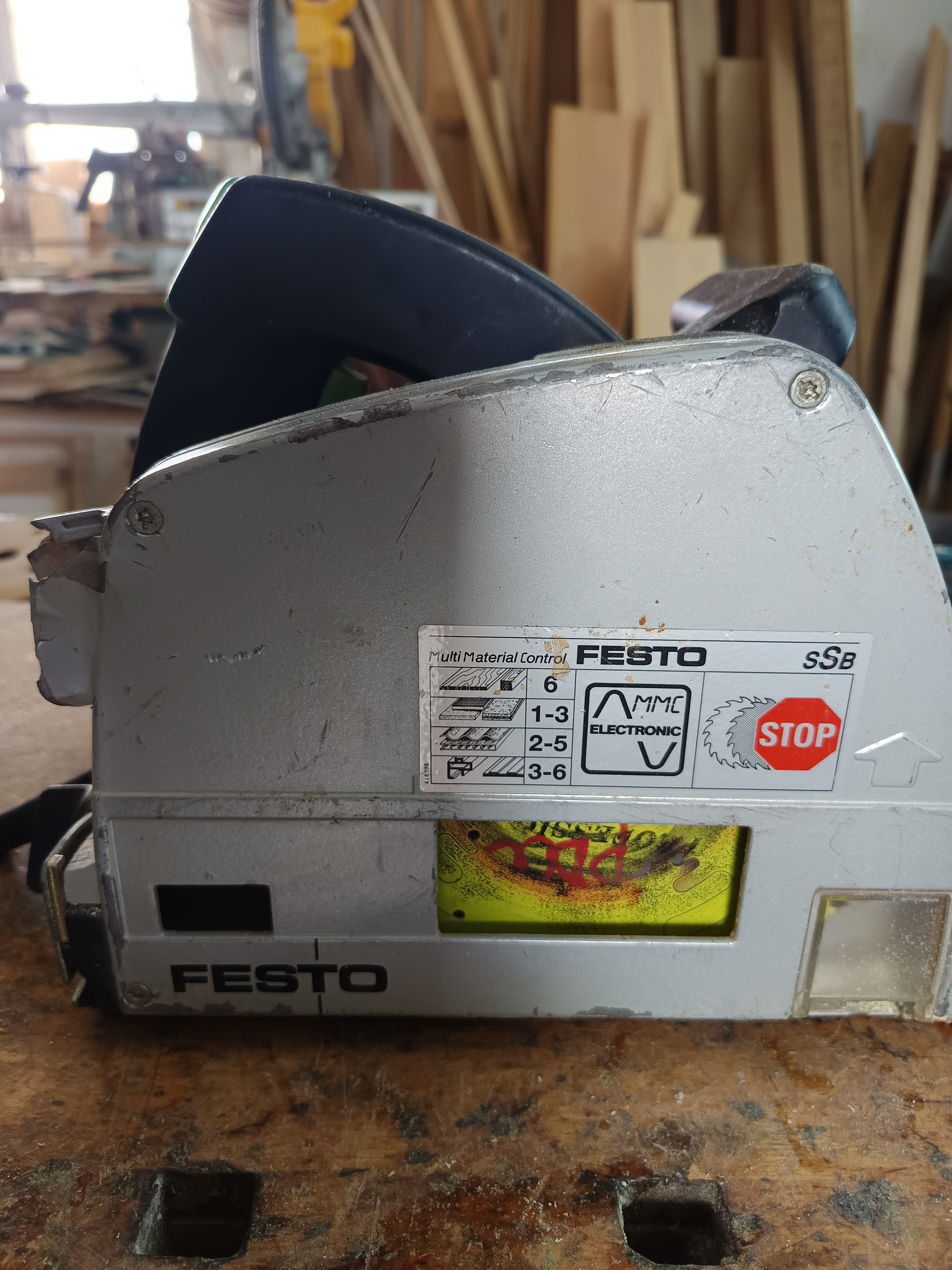 Sierra de incisión de festo,teniendo en cuenta que festo cambio el logo por el de Festool en el 2000 , son mínimo 25 años y está en particular a tenido más de un percance como caídas de cierta altura.