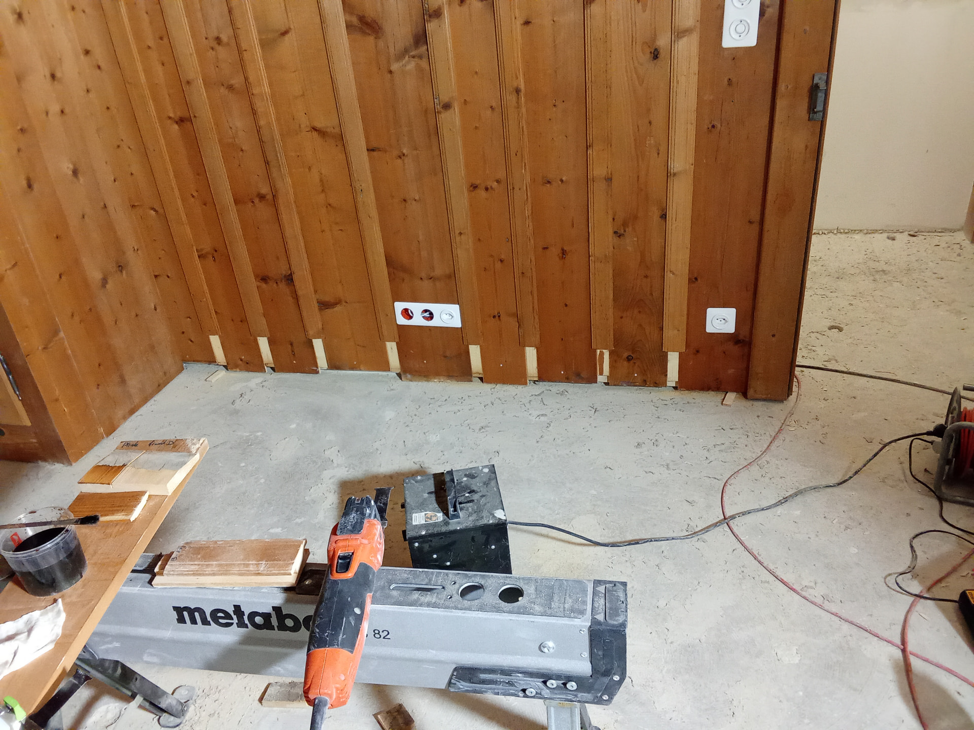 yo particularmente , preparé un tablero de 19 milímetros, va sujeta a los soportes de los pies que se utilizan para poner las ingletadoras , sobre este tablero coloco la