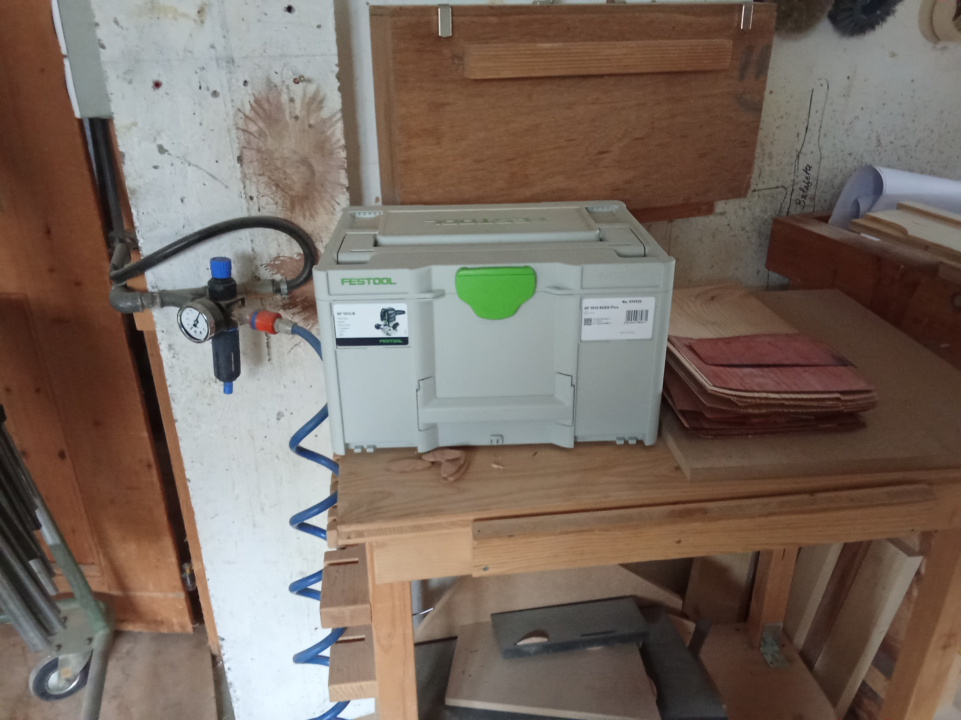 Kapex con su tope de madera, el tablero también me permite coocar herramientas que utilizo en ese momento