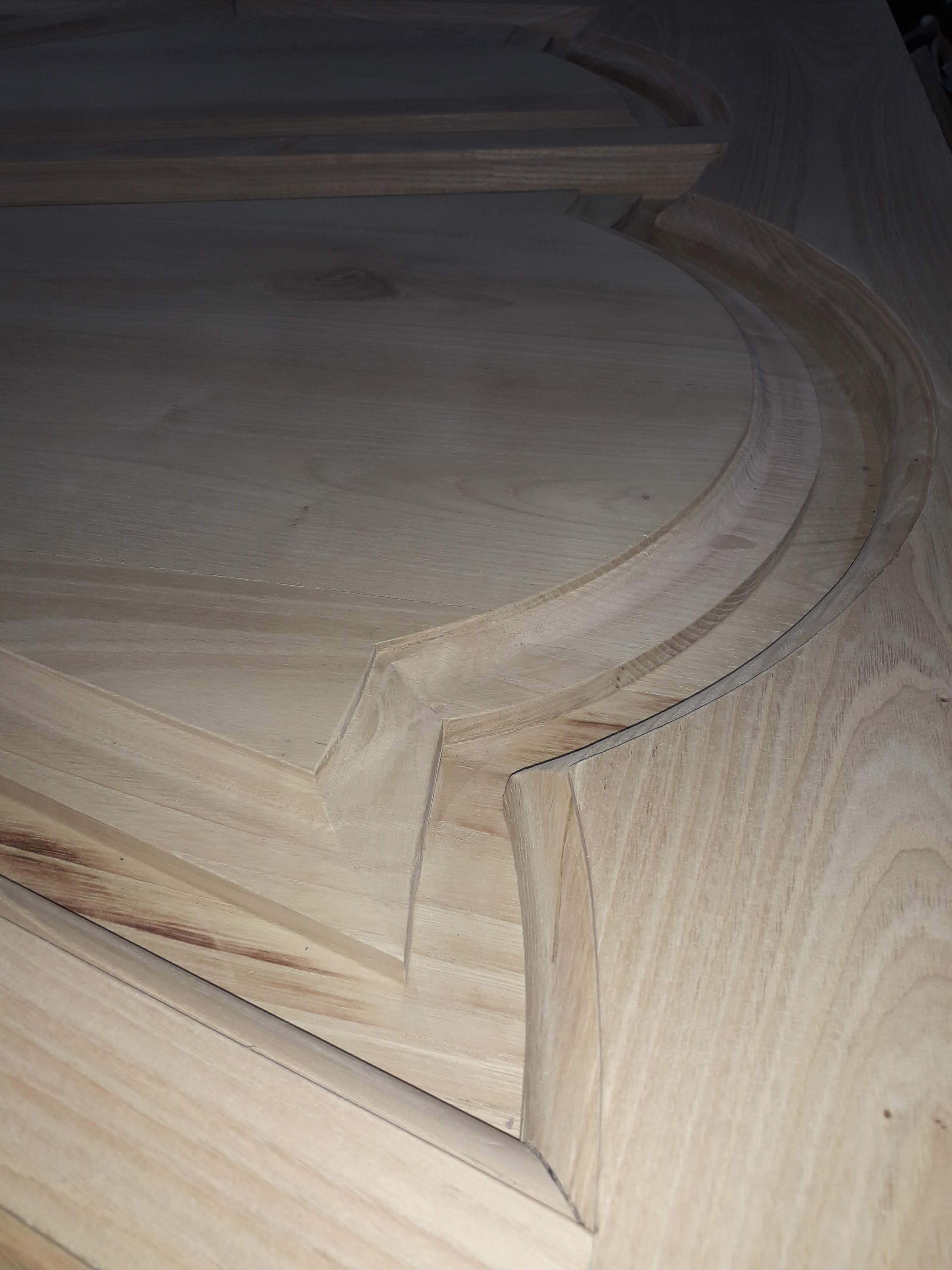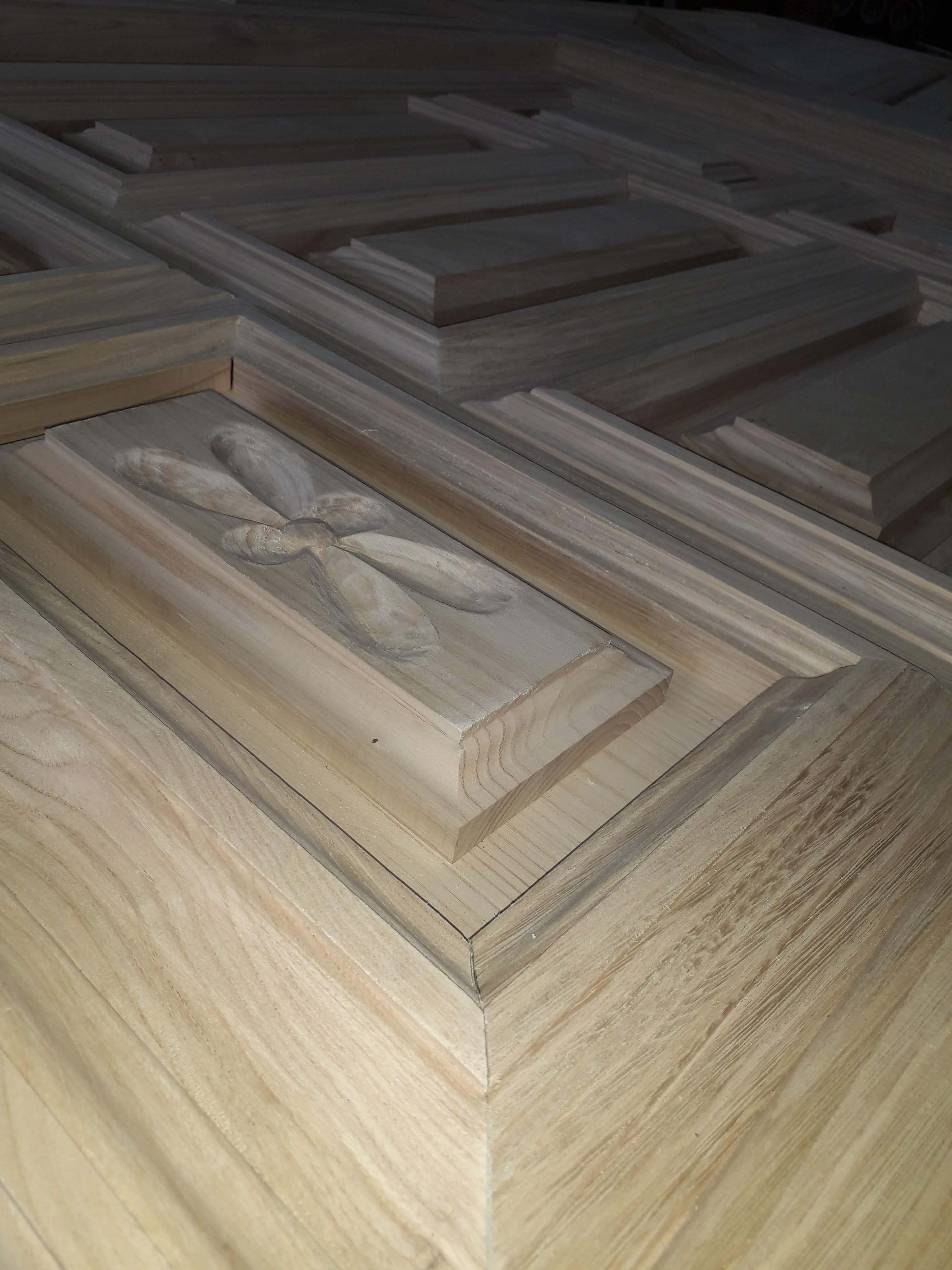 Bien… a simple vista puede parecer una puerta muy sencilla pero no lo es tanto… os voy a explicar su particularidad y lo que la hace para mi artistica: no lleva ningun tipo de moldura sobrepuesta o pegada ni nada por el estilo. Esta hecha con caja y espiga y aboquillada a mano. La puerta tiene 70 mm de espesor y la moldura esta hecha en el propio bastidor. Al espigar se deja un aumento por la zona de la moldura de la medida de la moldura y luego se dan cortes “a mano” a 45 ° de forma que al ensamblar quede perfecto. Se va probando pieza a pieza y se arma sin cola para comprobar que queda todo perfecto. Luego se desarma, y ya se echa cola, se van metiendo los entrepaños y se aprieta.