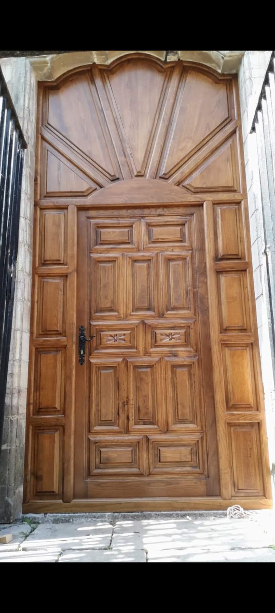 Os voy a enseñar una puerta de castaño y quiero que os fijeis en ella, como esta hecha. Es un tipo de puerta que a mi me encanta hacer para iglesias y edificios historicos. En mi zona los carpinteros de hacia el año 1800 hacian este tipo de carpinteria. Es una puerta ciega, con su bastidor formado por largueros y travesaños y sus plafones o entrepaños.