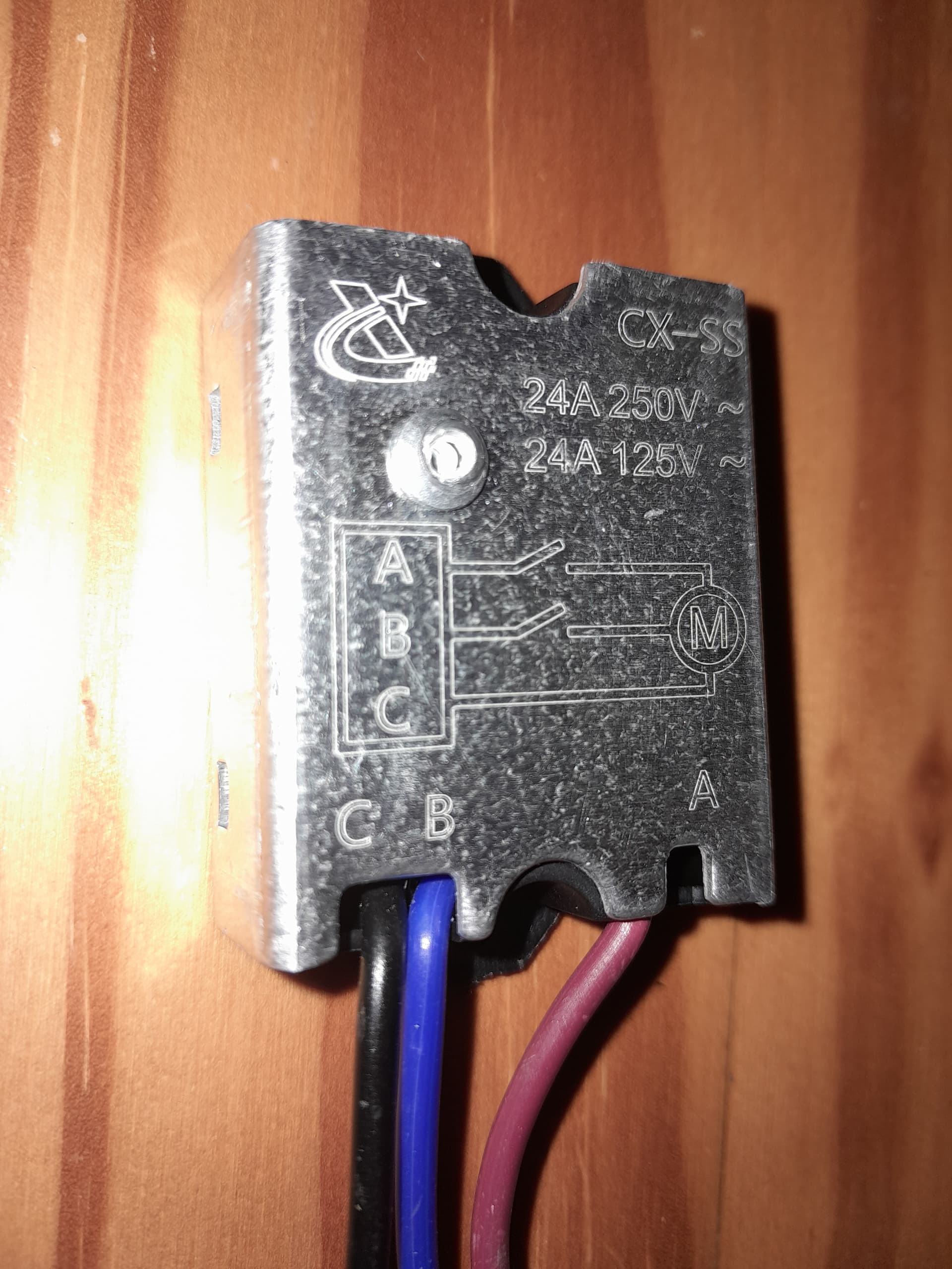 Exacto. De hecho, como yo lo tengo conectado no es correcto. El A lo tengo conectado a la AC y al interruptor, pero debería estar al motor y al interruptor. Supongo que me funciona porque dará lo mismo conectarlo a la entrada de ac en el switch o a la salida al motor. Lo dejaré así por la pereza a abrirlo de nuevo.