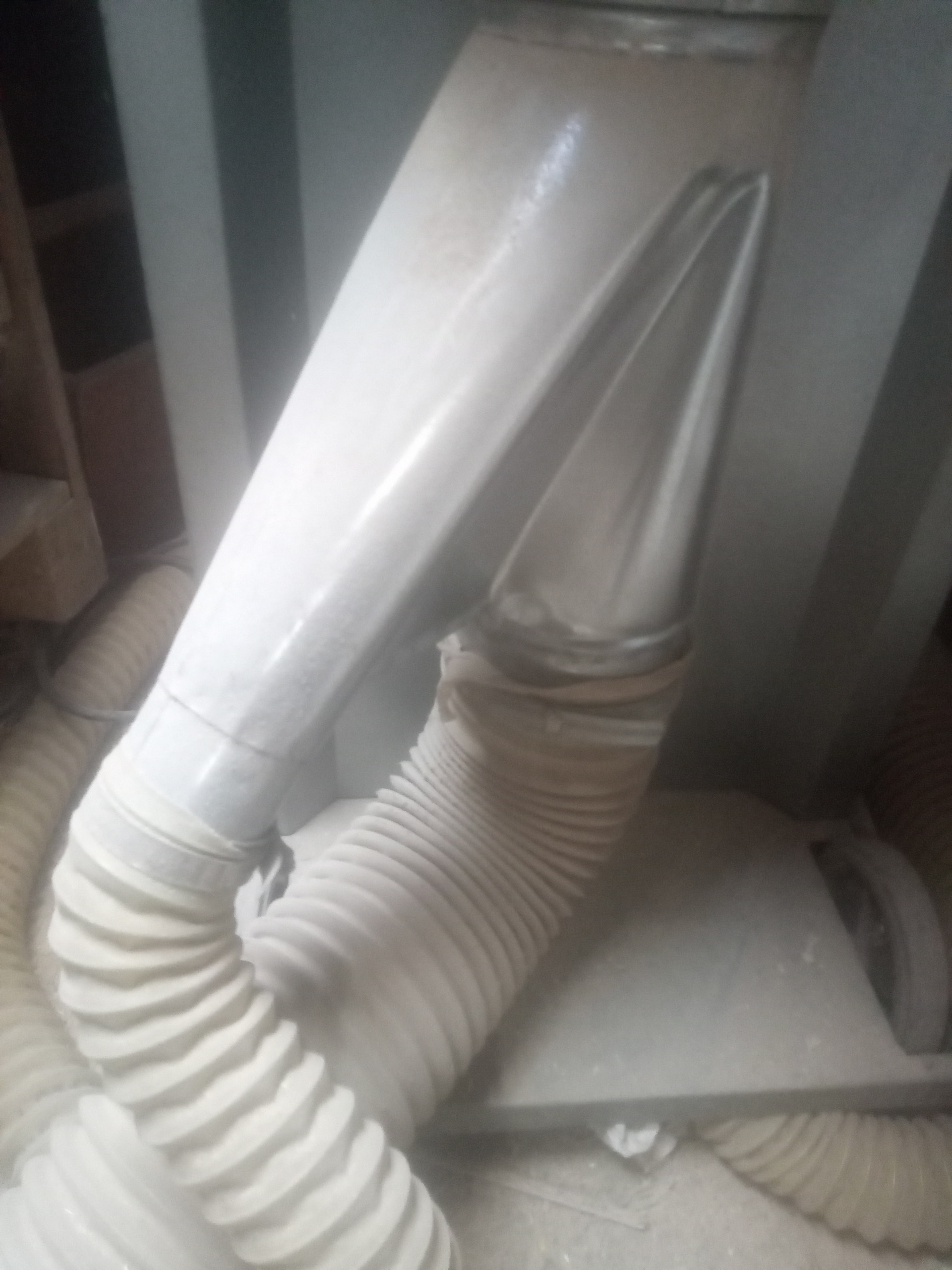 Esta tiene para meter un tubo de los grandes, entiendo que lo que pasa es eso, que se queda el serrín abajo y como la aspiradora no llega a cogerlo pues lo va echando por arriba .