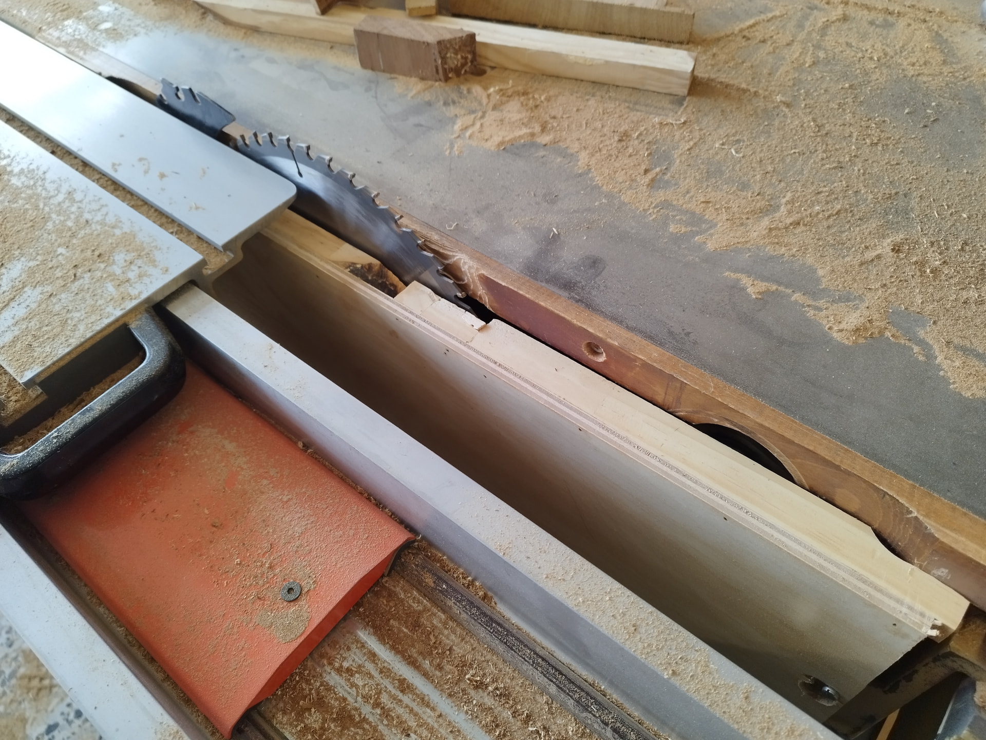 Hoy he probado ya un poco más en serio la máquina, he cortado unos tableros de contrachapado para unos cajones y una pasada,un antes y un después como deciais frente a la anterior. Es comodísima para dimensionar piezas, de hecho la he usado como sustituta de la ingletadora porque aún no tengo hecho un tope rápido para hacer todos los cortes iguales.
