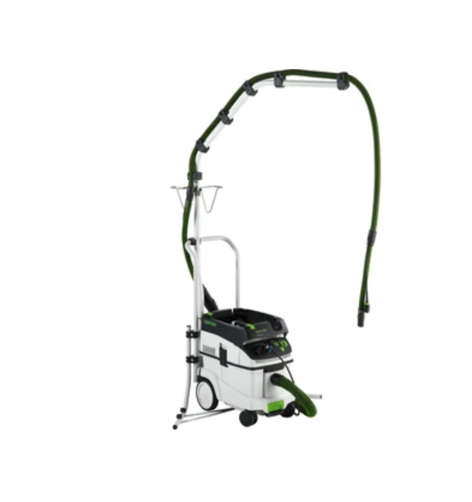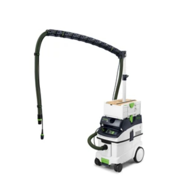 Me gusta la idea del brazo para la aspiradora ,pero luego pienso que no deja de ser otro trasto en el taller que me obstaculiza mover piezas largas, mi taller es pequeño, tengo ganas de ver el nuevo sistema de brazo de Festool a ver si es fácil de recogerlo y almacenarlo para que no quede enmedio.