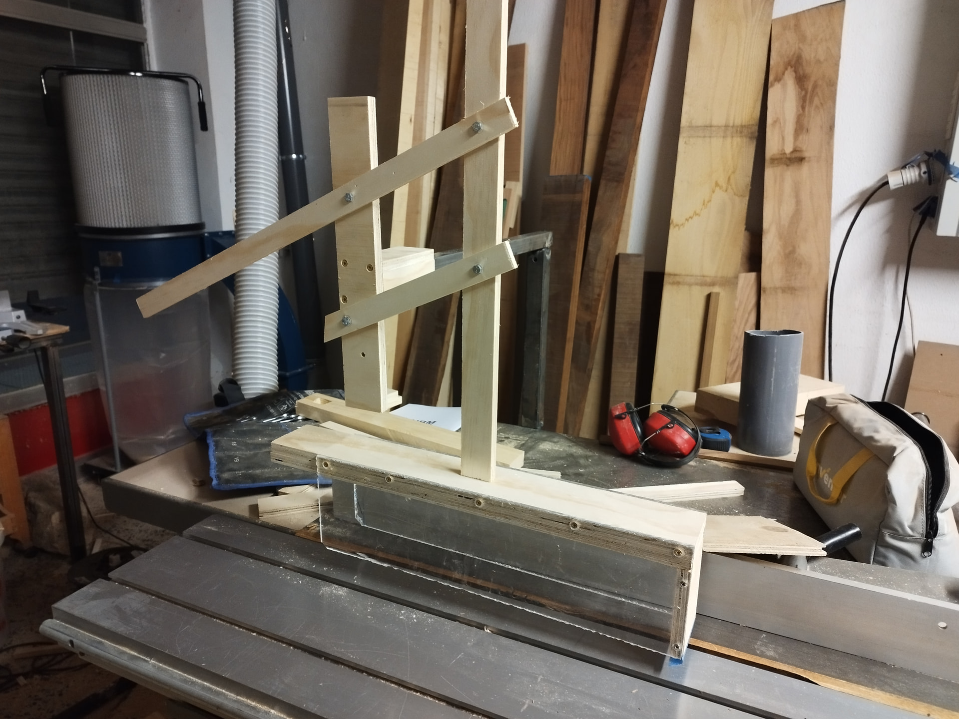 Si te fijas está la estructura de soporte que es de hierro, y luego hay como un cuadrado de madera que entra dentro del perfil de hierro, entonces es solo tirar para fuera y sale