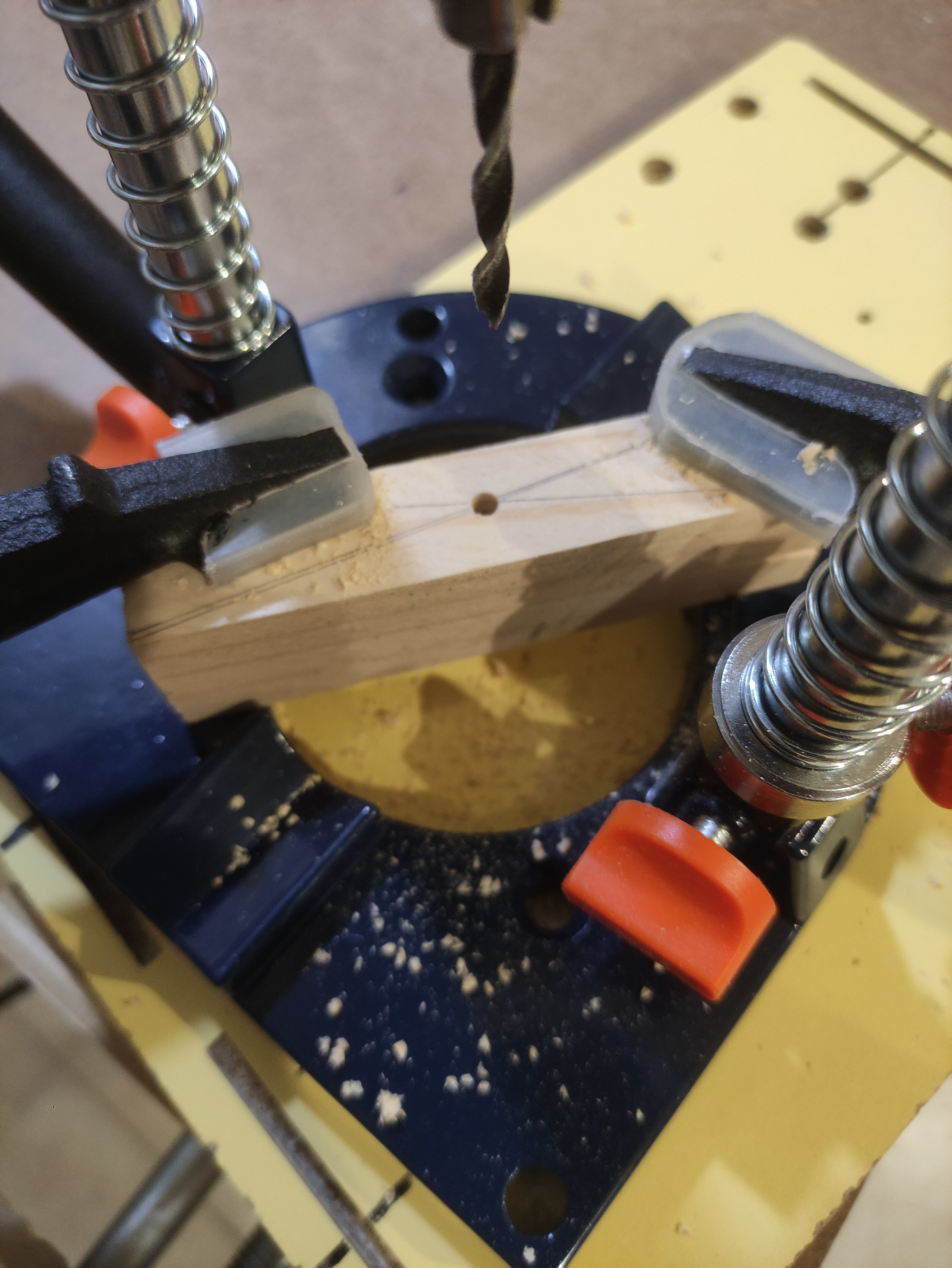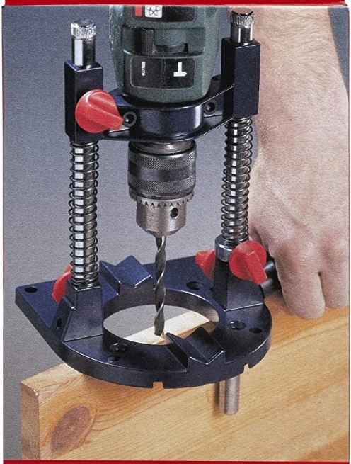 Y si lo atornillas a una base de DM por ejemplo que le de más estabilidad, como se hace con las fresadoras de mano? Puedes hacerla rectangular, y atornillar la columna en un lado de forma que te compense la parte de la empuñadura del taladro y se tenga en pie sin sujetarla, no se si me explico.