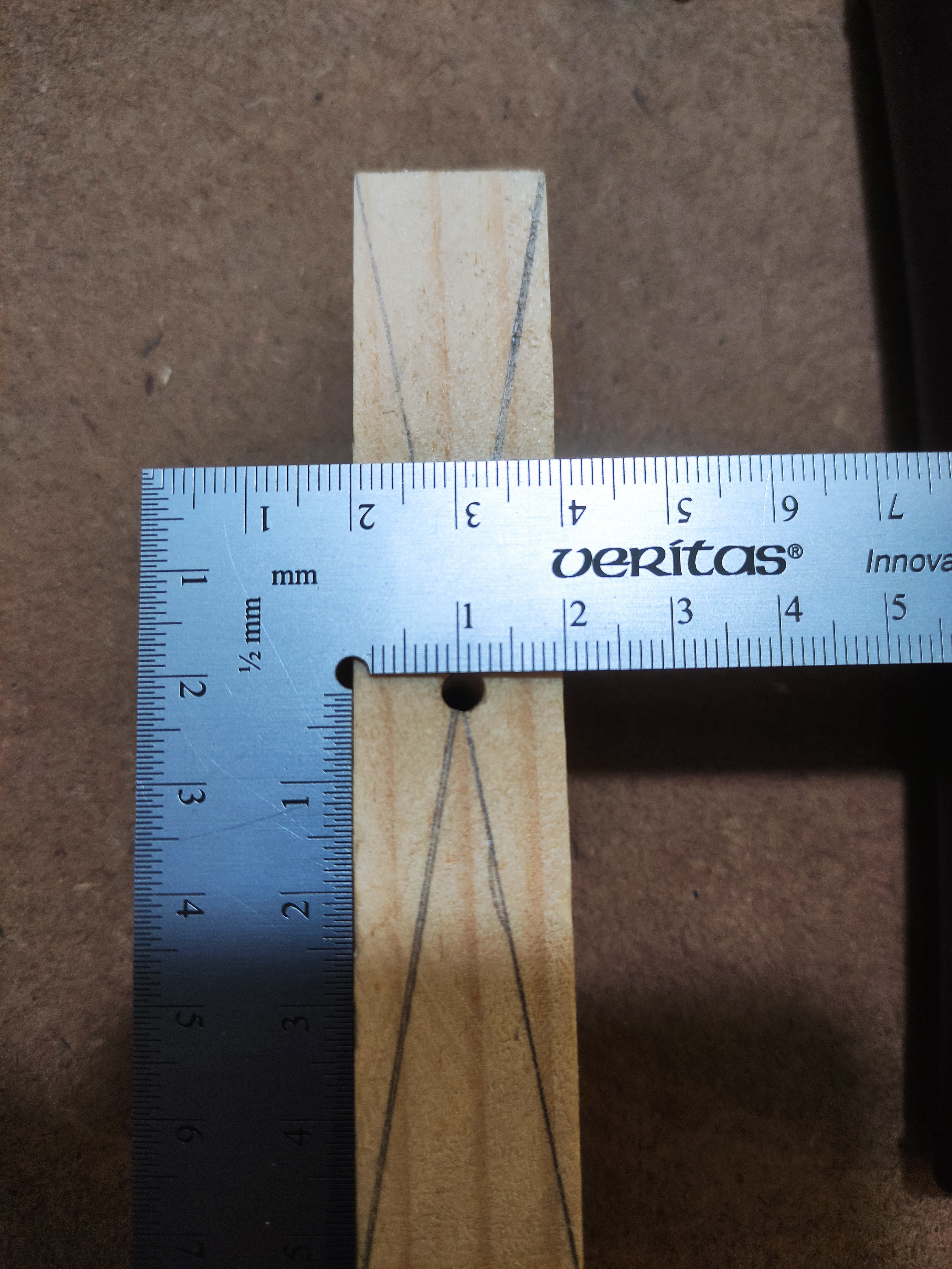 Y si tienes un liston lo suficiente largo, o tabla por el canto, y bajas los barrotes un poco te dan centro por geometría …