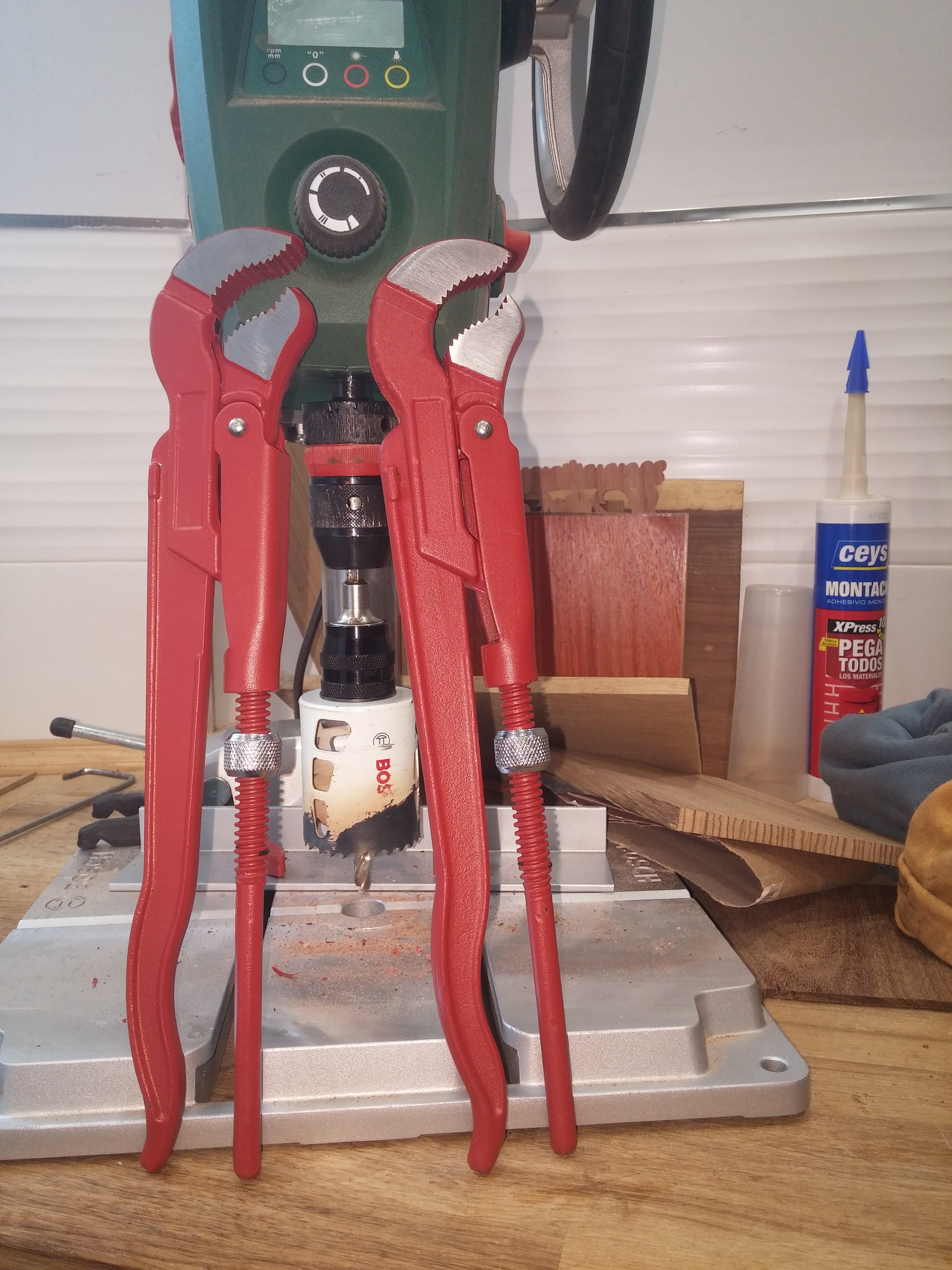 Sobre todo dos llaves grifas una en cada moleteado del portabrocas.