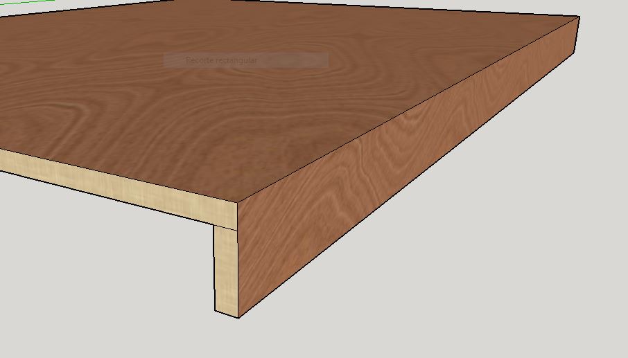Muchas gracias por las respuestas a todos. Me lo estáis poniendo más fácil de lo que yo contaba @Benjamin haciéndola con un tablero ya rechapado lo suyo es cortar los cantos a 45º y sacar el tablero unas tiras de 5 o 6cm a modo de faldón para colocarlos ingletados y darle el aspecto de una madera gruesa, no?