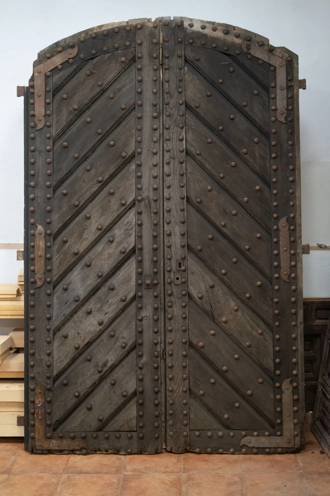 Una puerta en iroko, de esta típica que es el bastidor y luego unos tablones con clavos embellecedores, tanto por dentro como por fuera, con un pequeño modulo de cristal de seguridad al lado, de unos 40cm, la hoja de 90, instalada y llevándome la otra la he cobrado en 1100€. El iroko me lo han vendido a 1900, unos 390€ en madera.