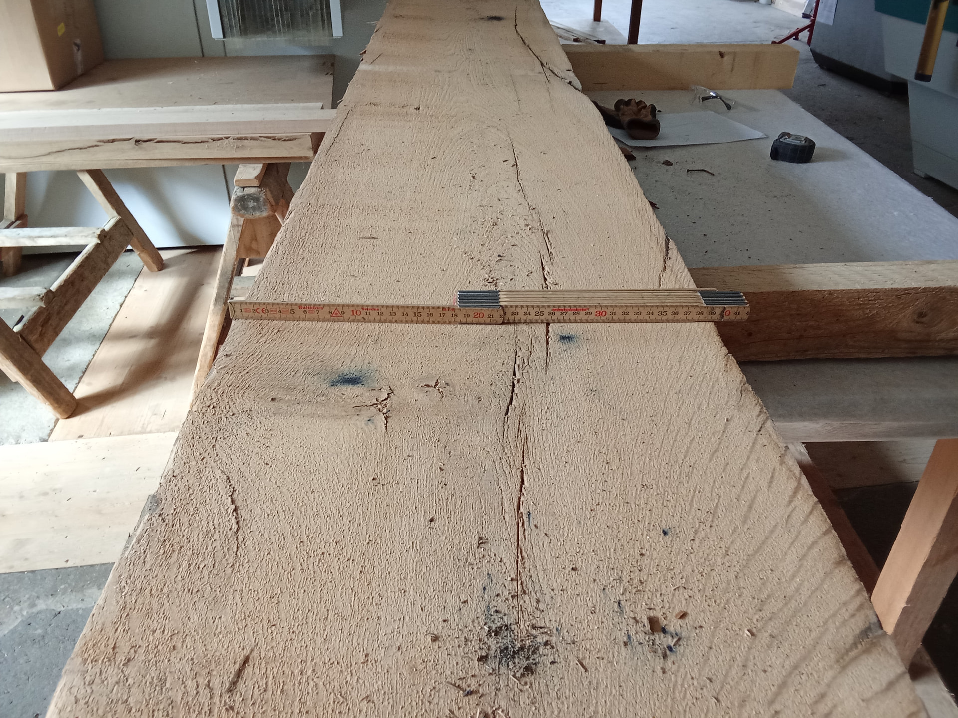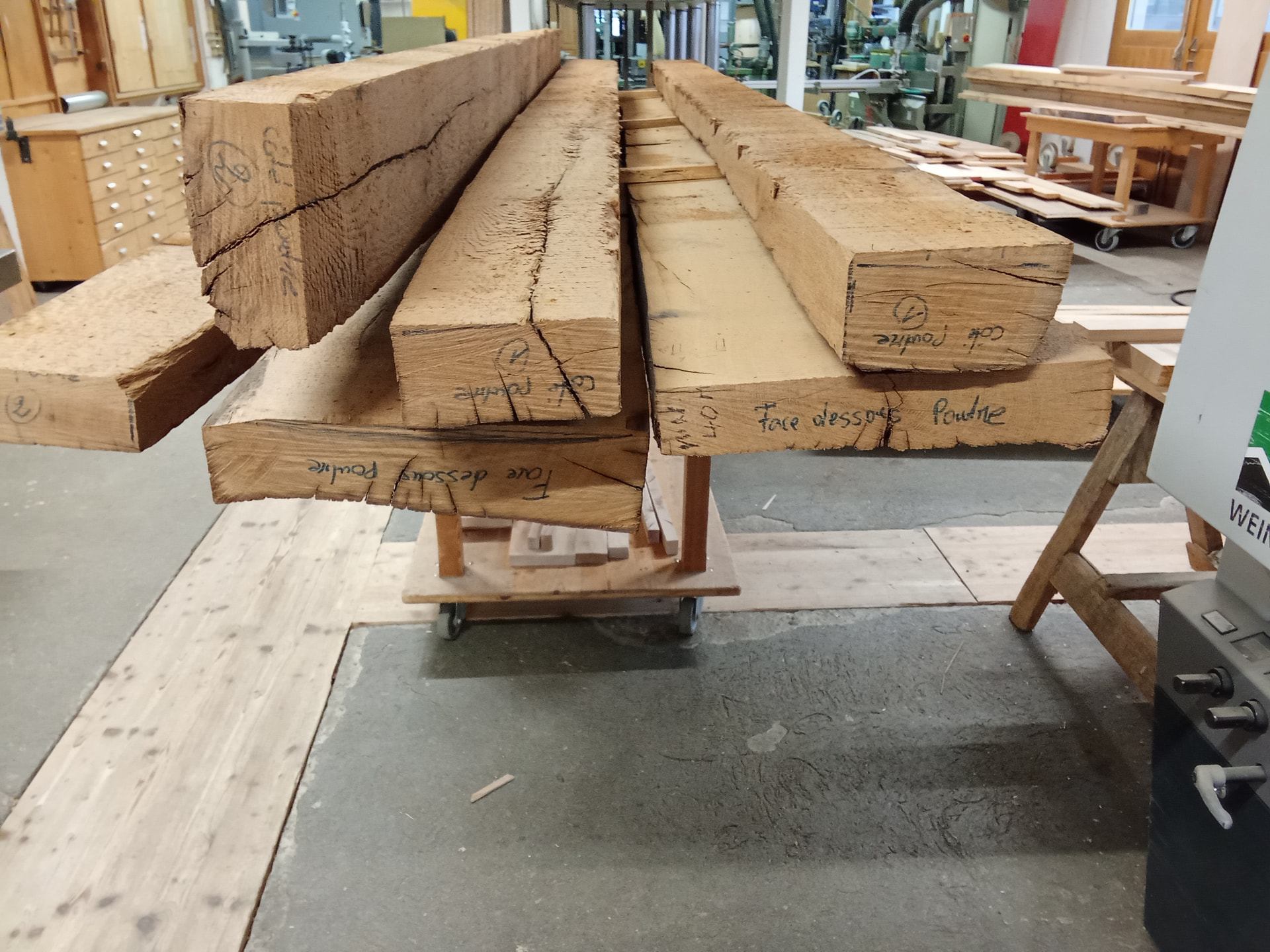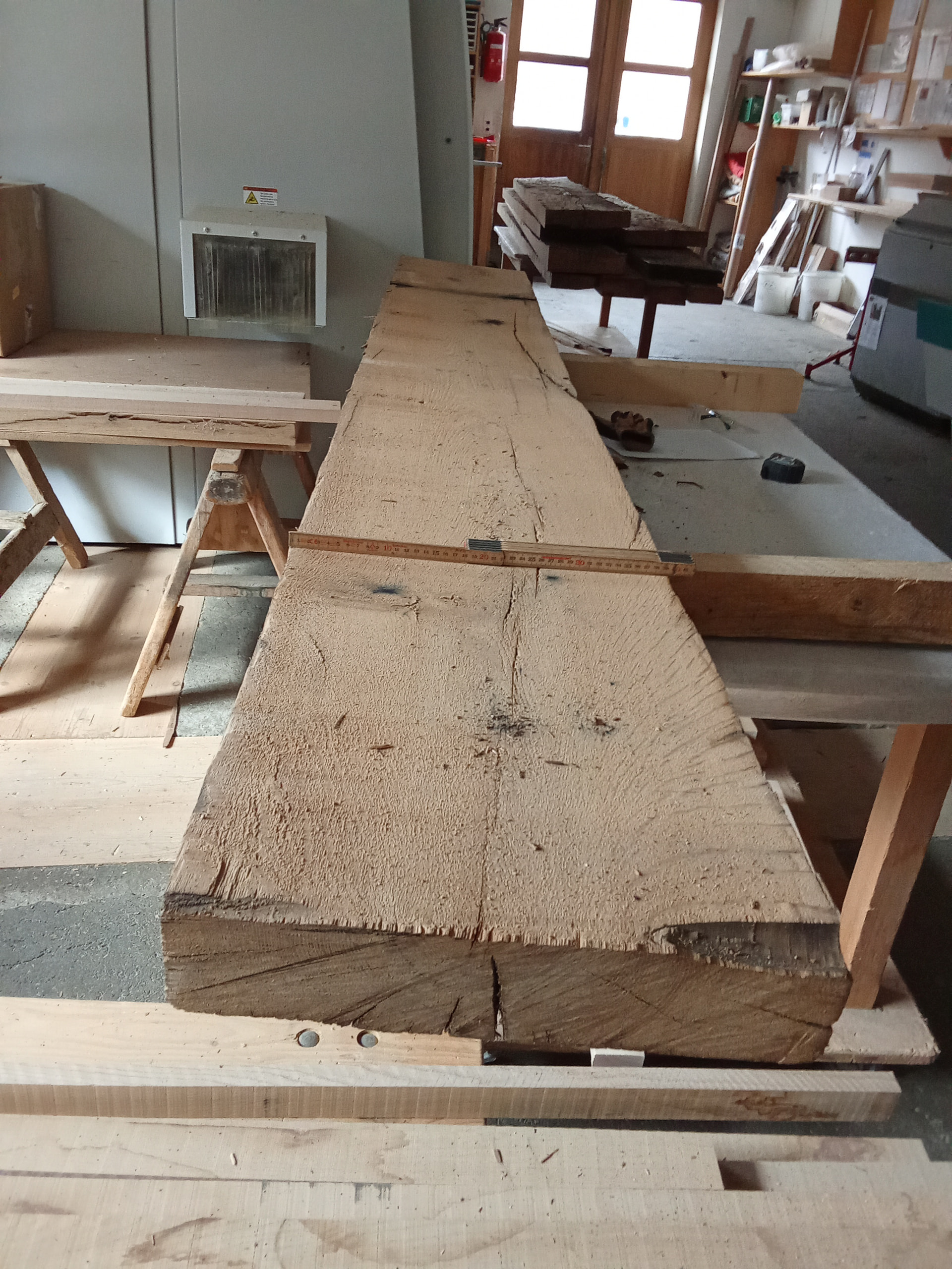 Buenas tardes, unas vigas antiguas de roble, se van a utilizar para realizar unas vigas aparentes , trabajándolas para darle la pátina que otorgan los años