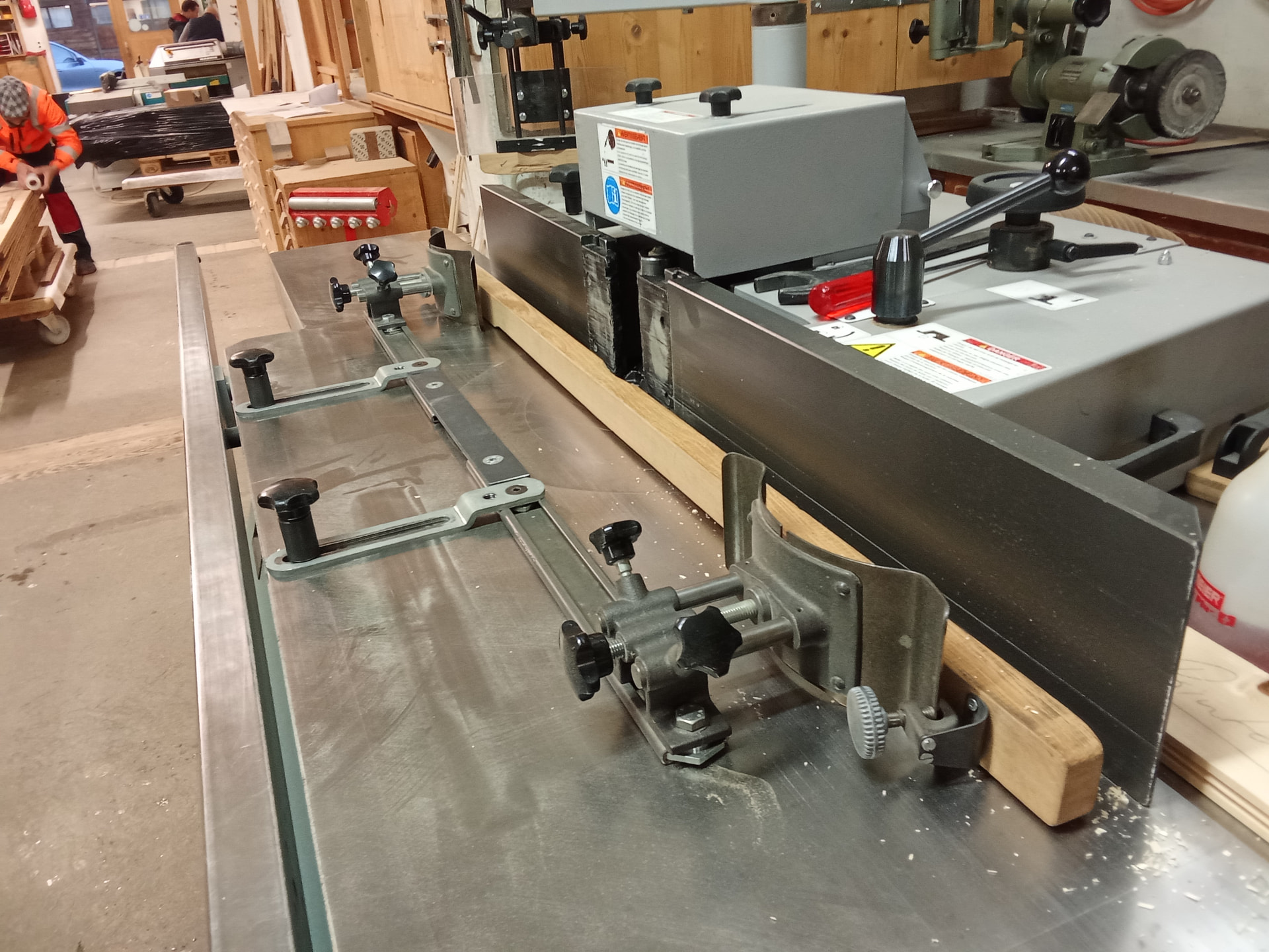 Es buen sistema, aunque la tabla que tiras al canto es problematico. Quiero decir que la que va plana con alimentador se hace bien pero la que va de canto, como cambiar el alimentador de posicion es bastante rollo y por unas pocas tablas no merece la pena, pues hay que preparar artilugio para que la tabla vaya bien apretada contra la guia, porque la fresa “tira” bastante y si la tabla no esta sujeta con algo, “a mano” no queda muy bien.