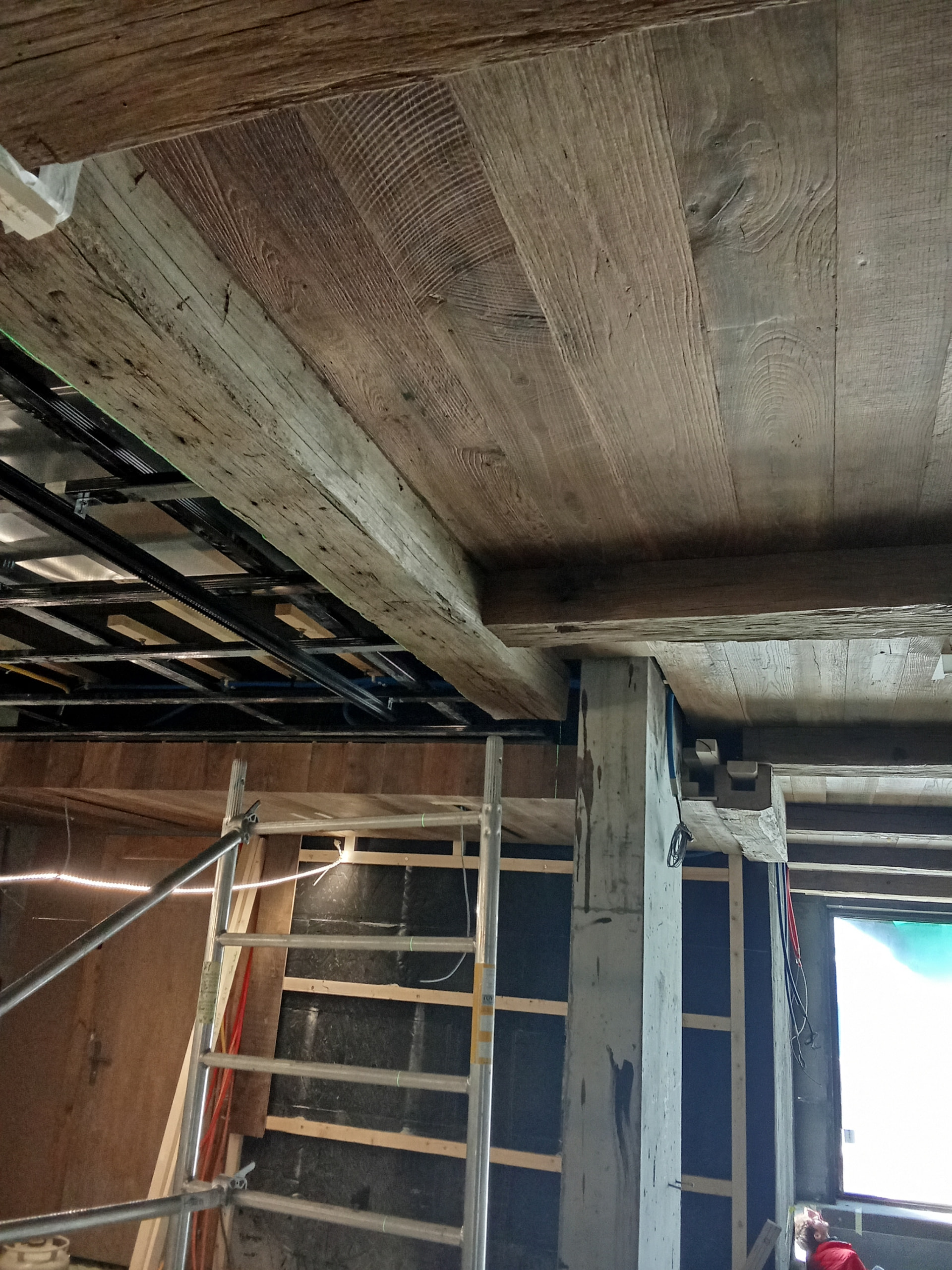 Buenas tardes, unas imágenes del techo en roble, por cuestiones políticas no diré si es roble rojo o blanco , por si acaso , que nunca se sabe quién puede leer esto