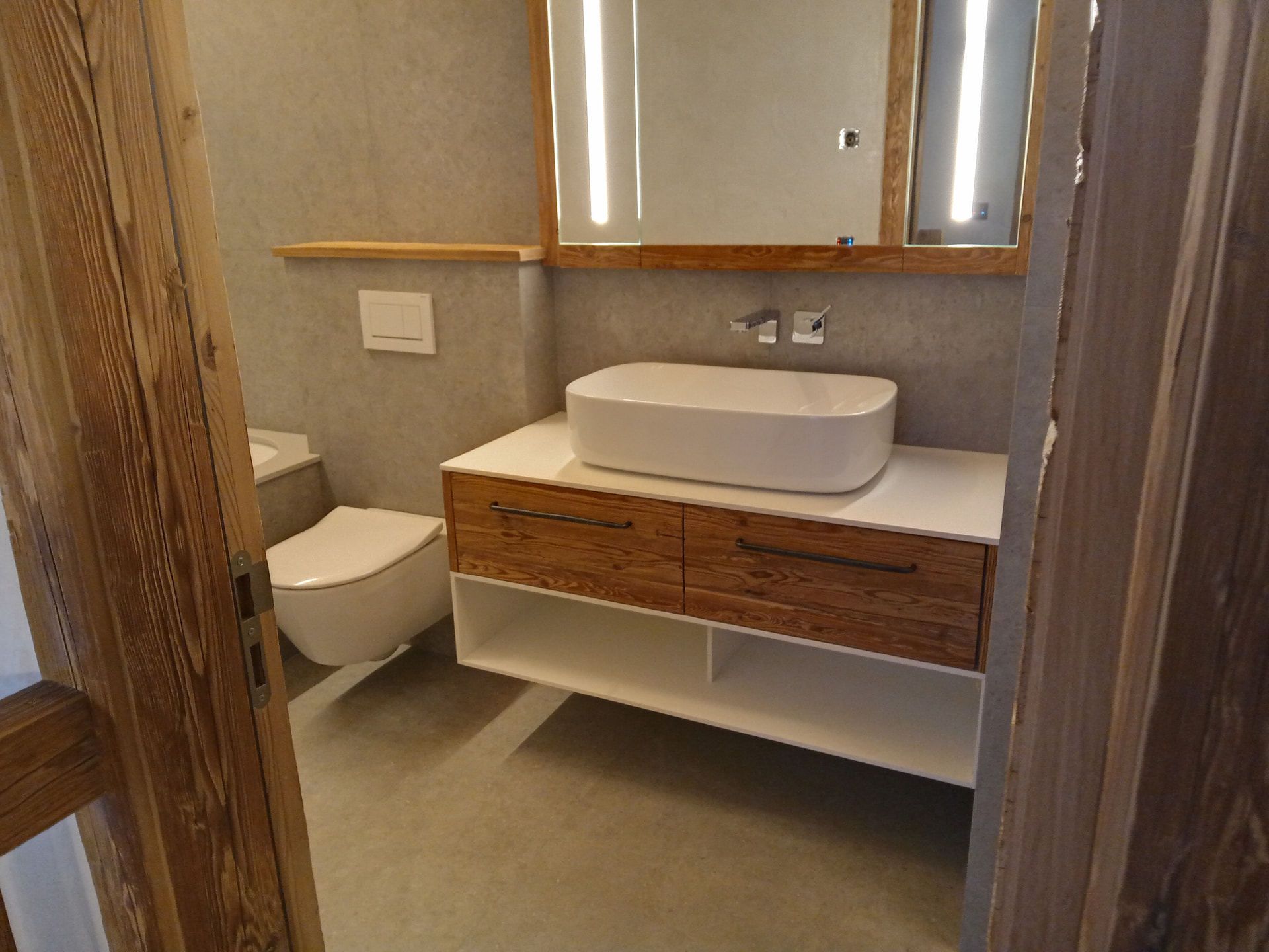 Buenas tardes, como el reciclaje y la economía circular observo que son tendencia, pues unas fotos de un lavabo y su encimera, productos cien por cien locales y naturales
