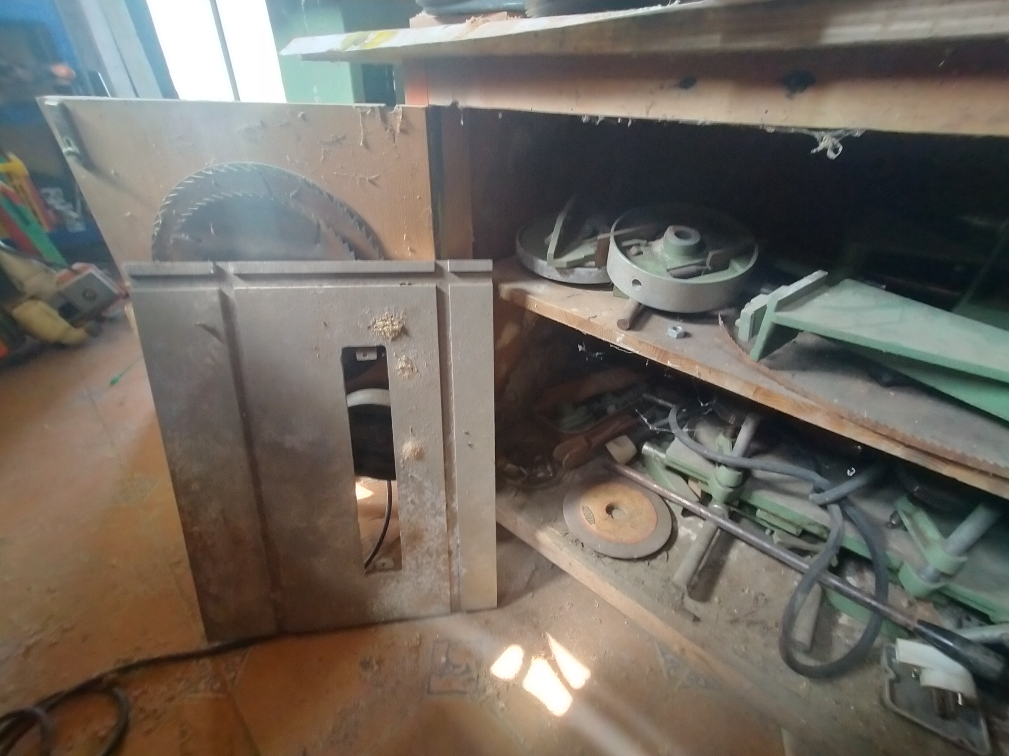 Tiene tupi, sierra, sierra de cinta, torno, mortajadora, y creo que tambien esmeriladora.