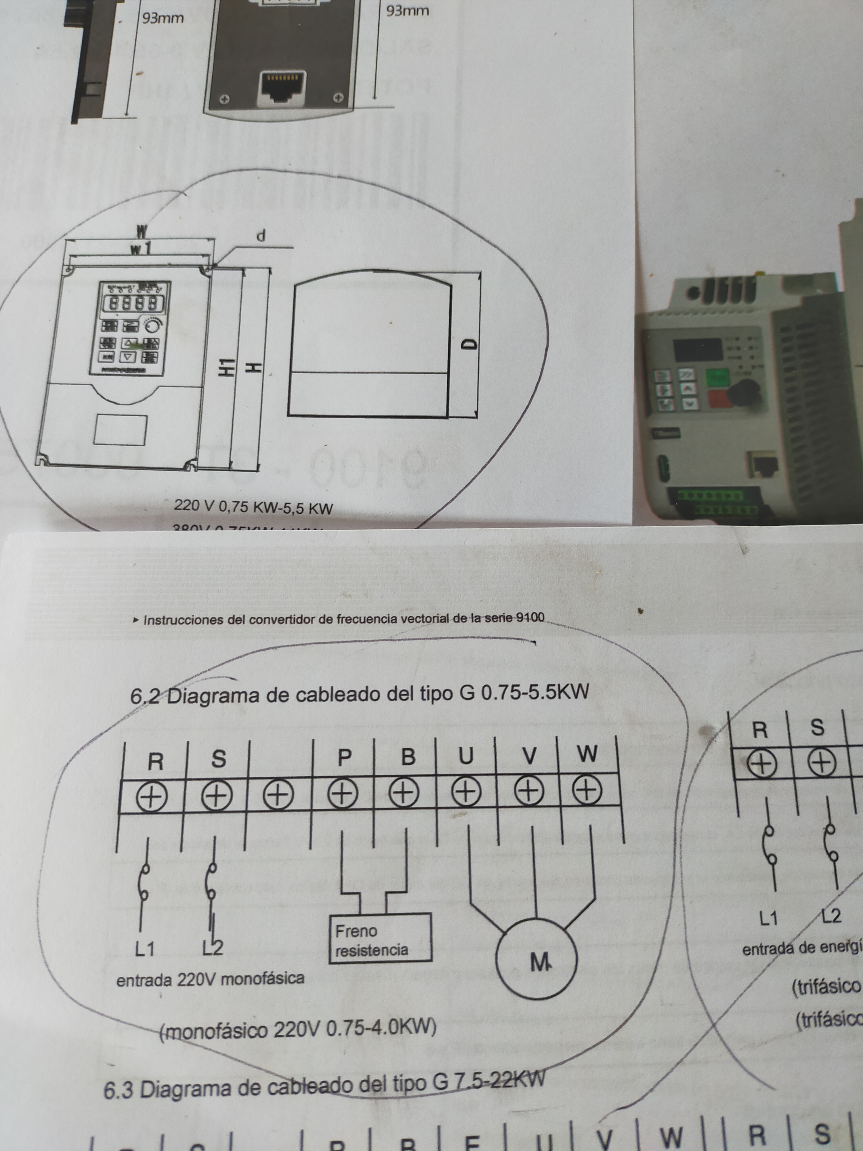 De fabrica estaba todo al max (50 HZ, 2,2 Kw, …), menos la vueltas que subi a 2.840 con una ligera mejoria.