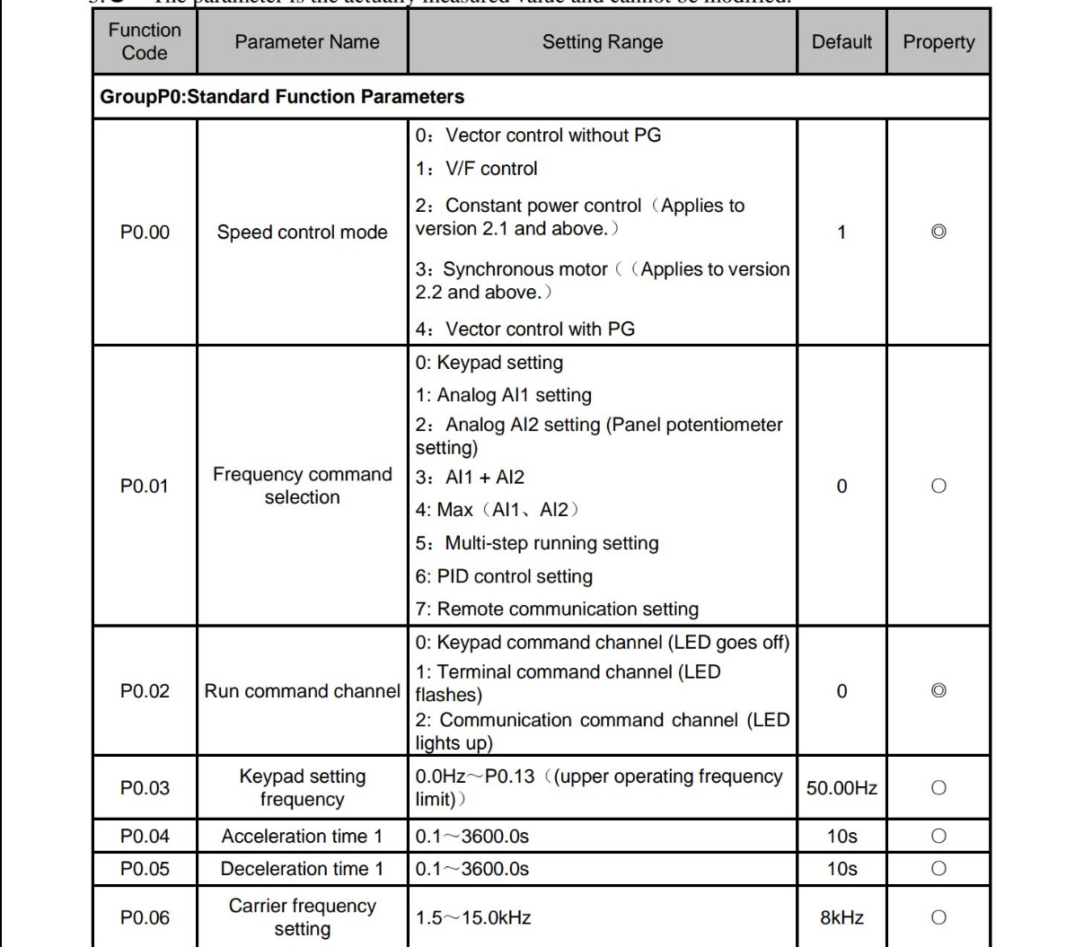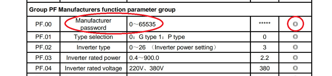 Esta la lista en el manual pero en el variador no pasa de PF 0.0.0.0.