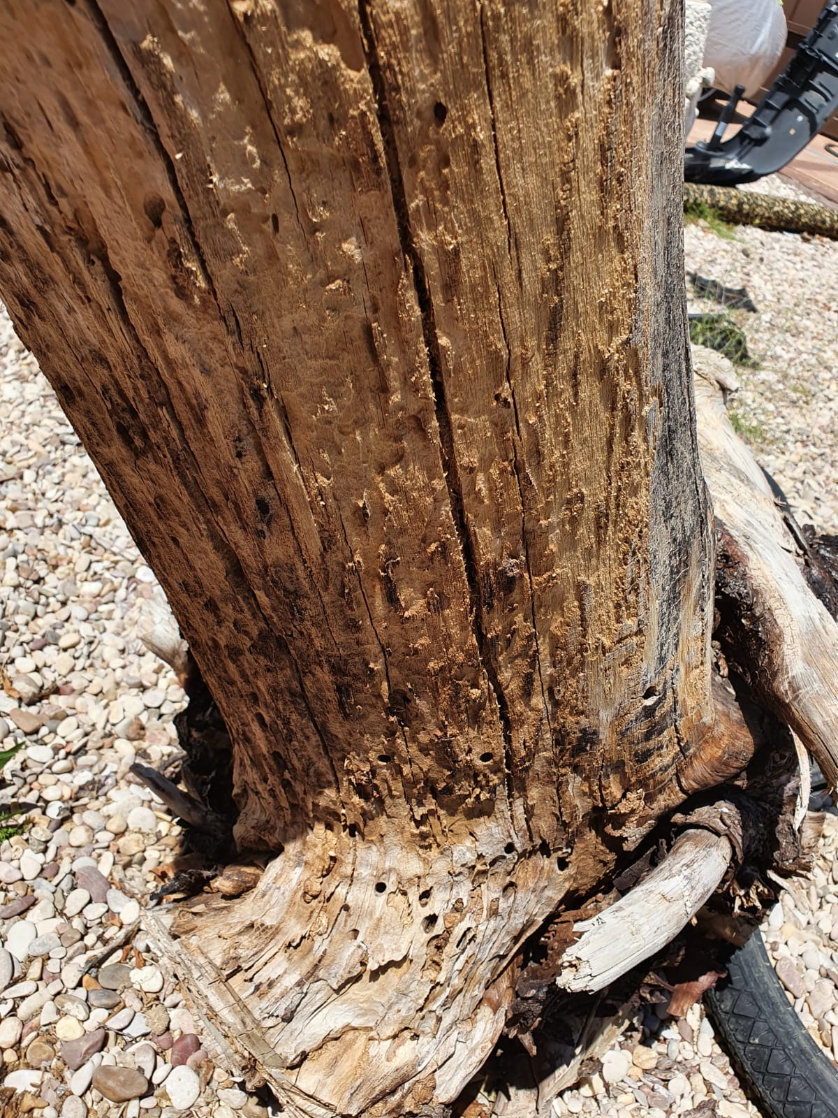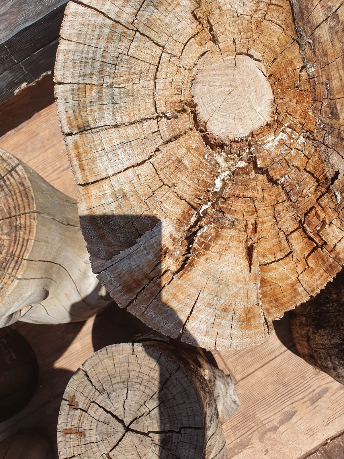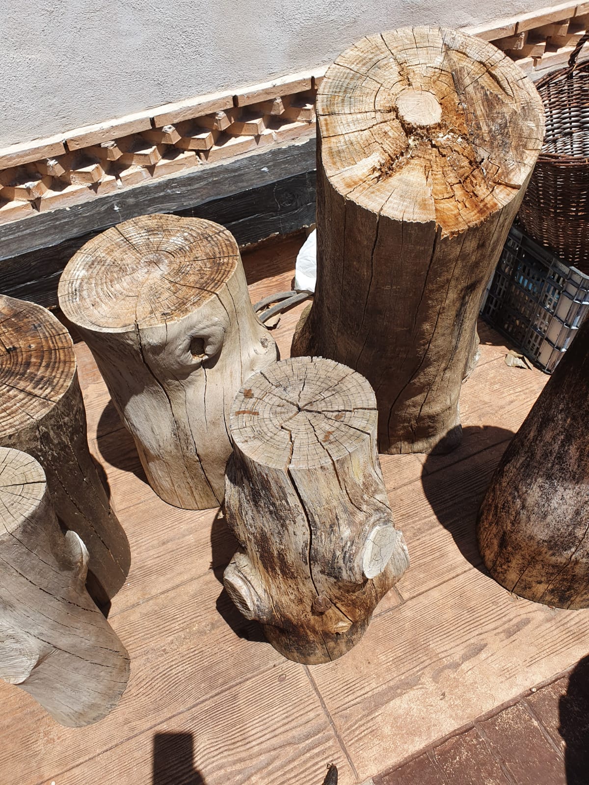Buenos días!! Hace unos años cortamos unos pinos, y los troncos los dejamos en el patio al aire libre, con la idea de hacer taburetes y algunas cosillas mas. El tema es que se han ido quedando ahí, sin tratar ni cortar.
