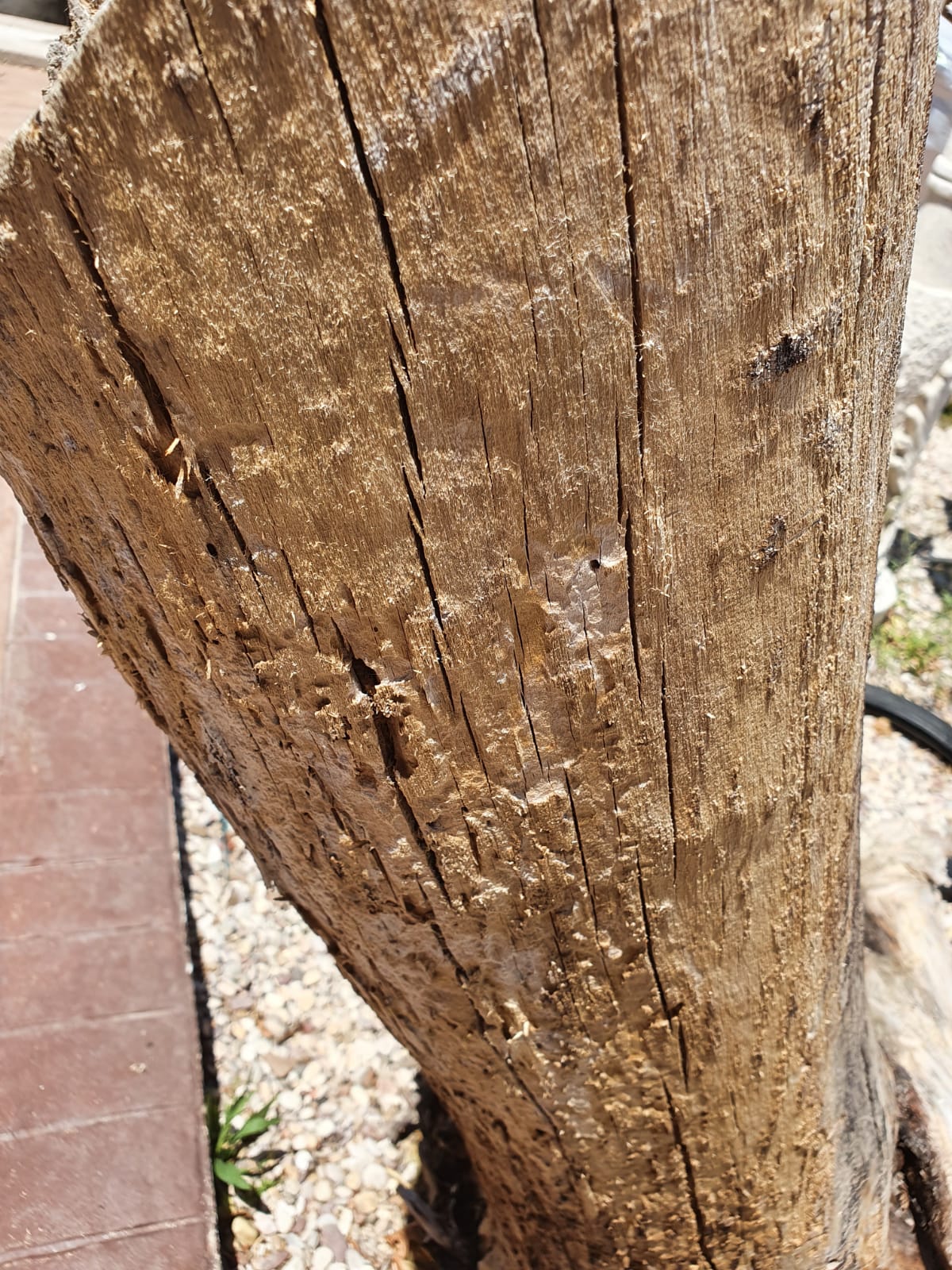 El tema es que no sabemos, si tratarlo con algún tratamiento de los que recomendáis aquí (tampoco sé cual sería el mejor) antes de cortarlos, o despues. O si esa madera al estar agrietada y con bichos, no serviría…