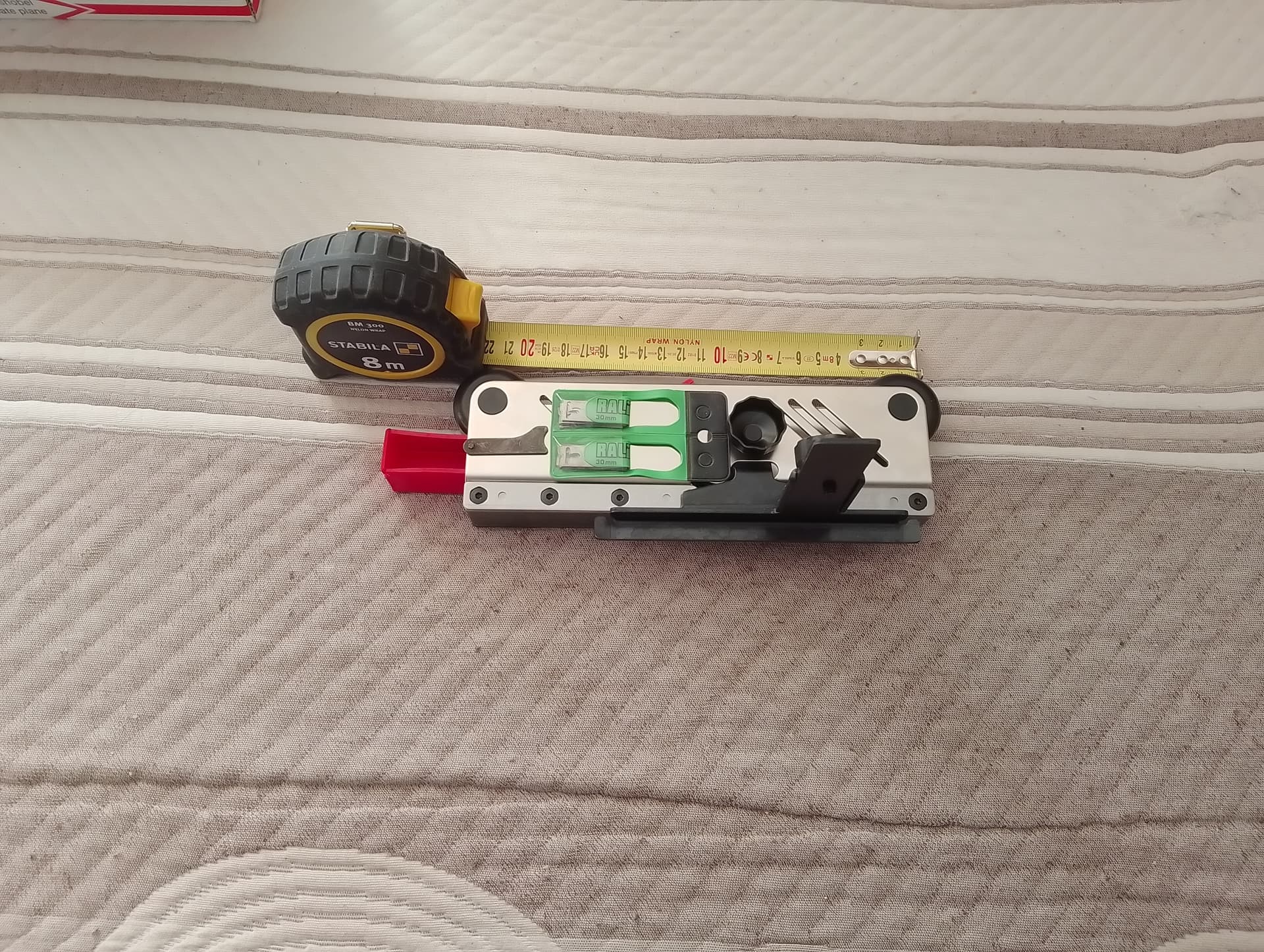 Manteniendo la pieza contra los mismos topes con una mano , y si es larga usando el otro del mismo grosor para que quede estable, va muy bien.