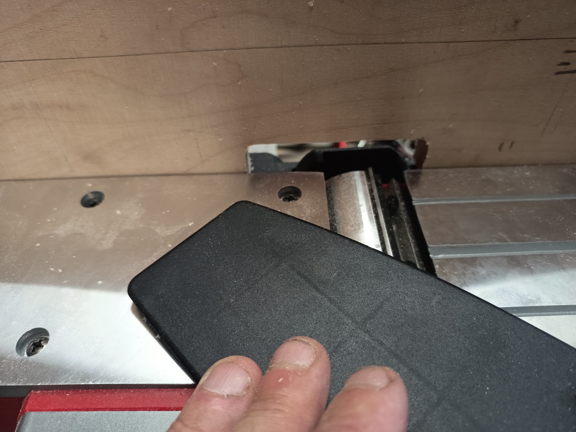 Edito para añadir: Siguiendo con la construccion de la pared lateral para el cepillo, que en realidad es facil, a ratitos lo voy haciendo, es ir introduciendo cada contorno que se realiza y marcar cada obstaculo que te encuentras a medida que profundizas. Por ejemplo, la proteccion con la salida de aspiracion ya esta solucionado, luego me encontré con los pies de los angulos de soporte lo primero, hice con la sierra unos cortes despues de marcarlo con lapiz colocado en su posicion y luego con la fresadora un repaso para que quede mas o menos recto (esto solo va a ser algo provisional porque estoy usando un tablero que habia usado para probar la fresadora y por detras esta marcado, o quizas simplemente le realice un chapado final y con la fresadora y el cojinete para contornos recorte los huecos, ya voy viendo sobre la marcha).