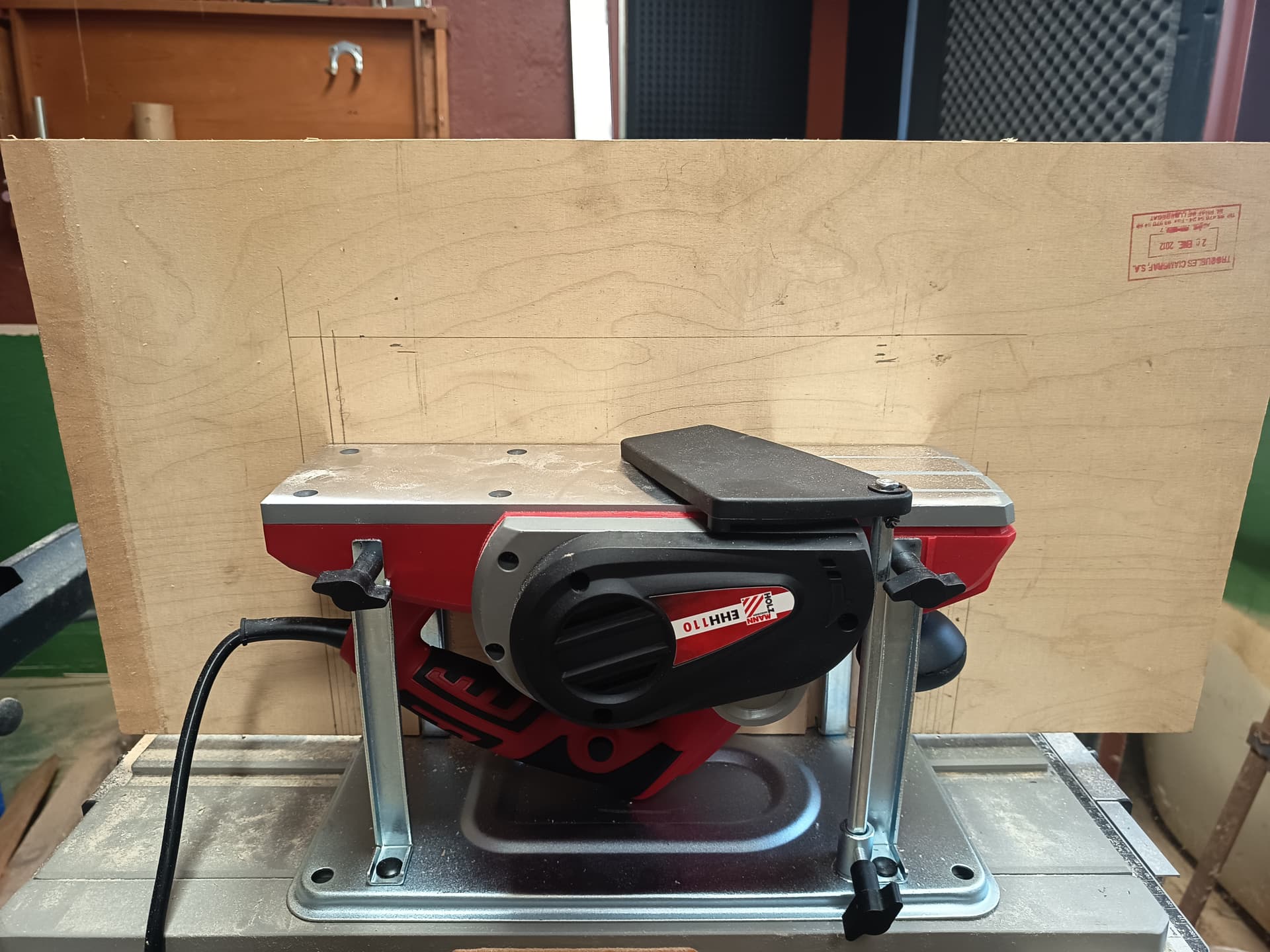 Buenas, estoy tuneando mi nuevo cepillo electrico para tenerlo invertido, es un Holzmann EHH110 de 110mm de ancho, una buena anchura para muchas maderas que utilizo de palets sobretodo. Este cepillo ya dispone de una base en la que se coloca el cepillo en posicion invertida, tambien dispone de un tope lateral para el paso de la madera pero faltaria la parte mas importante, la pared lateral a escuadra, que ya que lo comercializan invertido podrian haber dispuesto de una placa lateral o un accesorio, pero bueno, es algo que se puede hacer medianamente facil en casa con una madera.