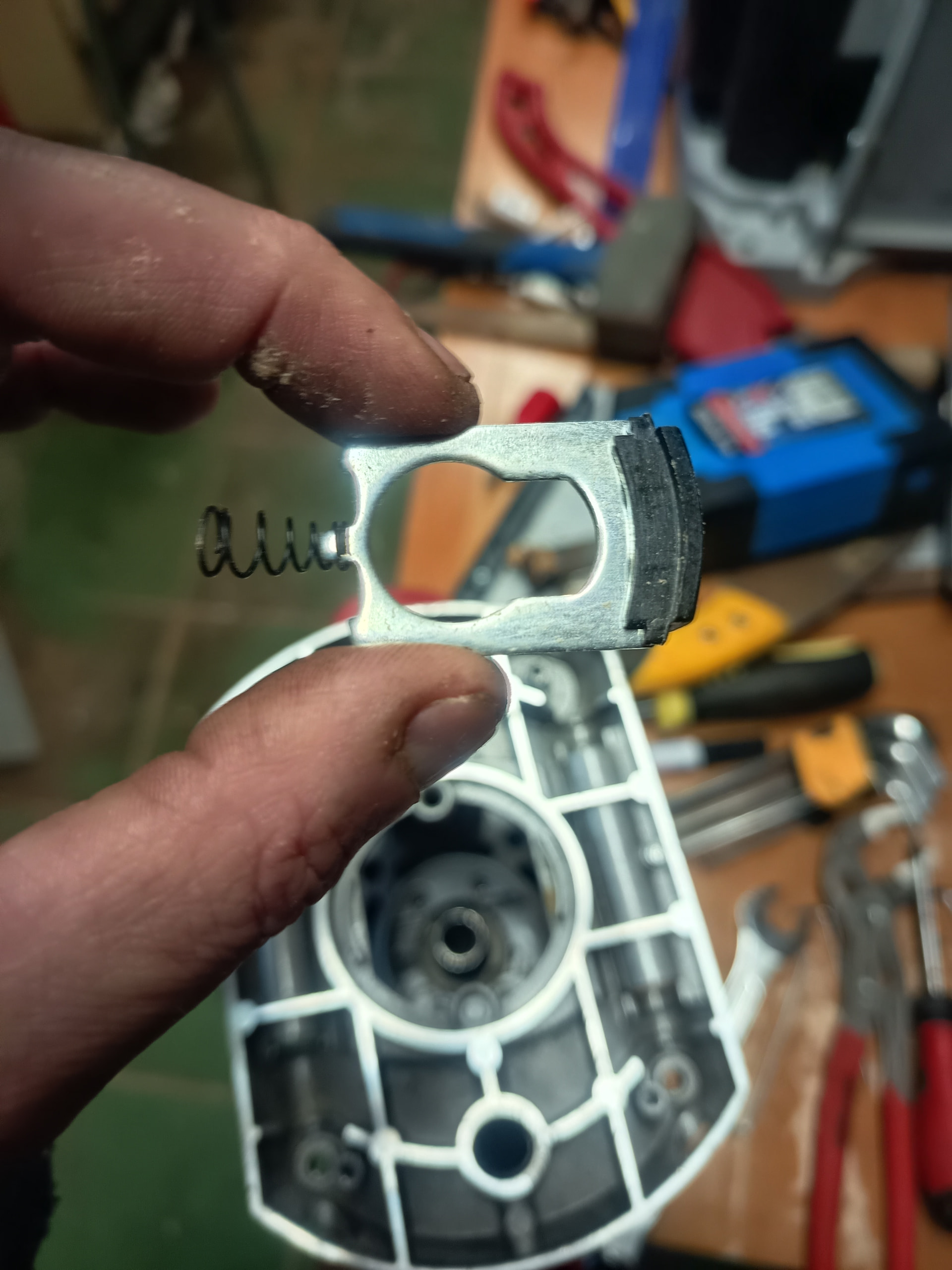 Luego he sacado la pieza del bloqueador del porta fresas con su muelle, sale solo, solo hacerle un poco de palanca