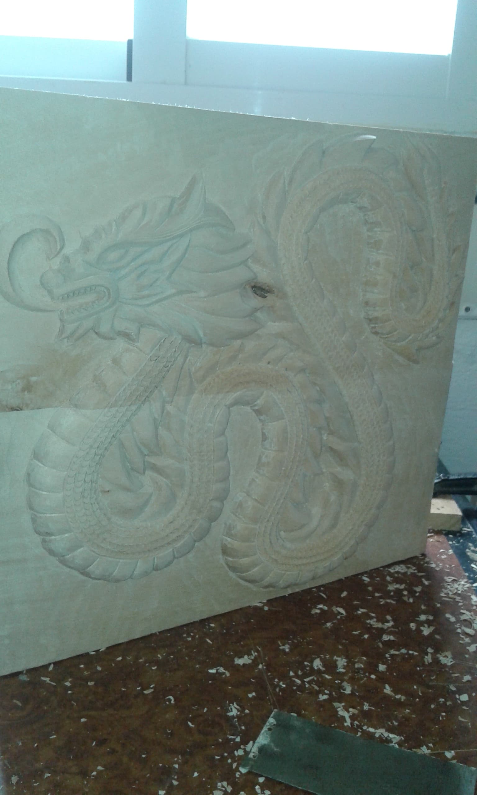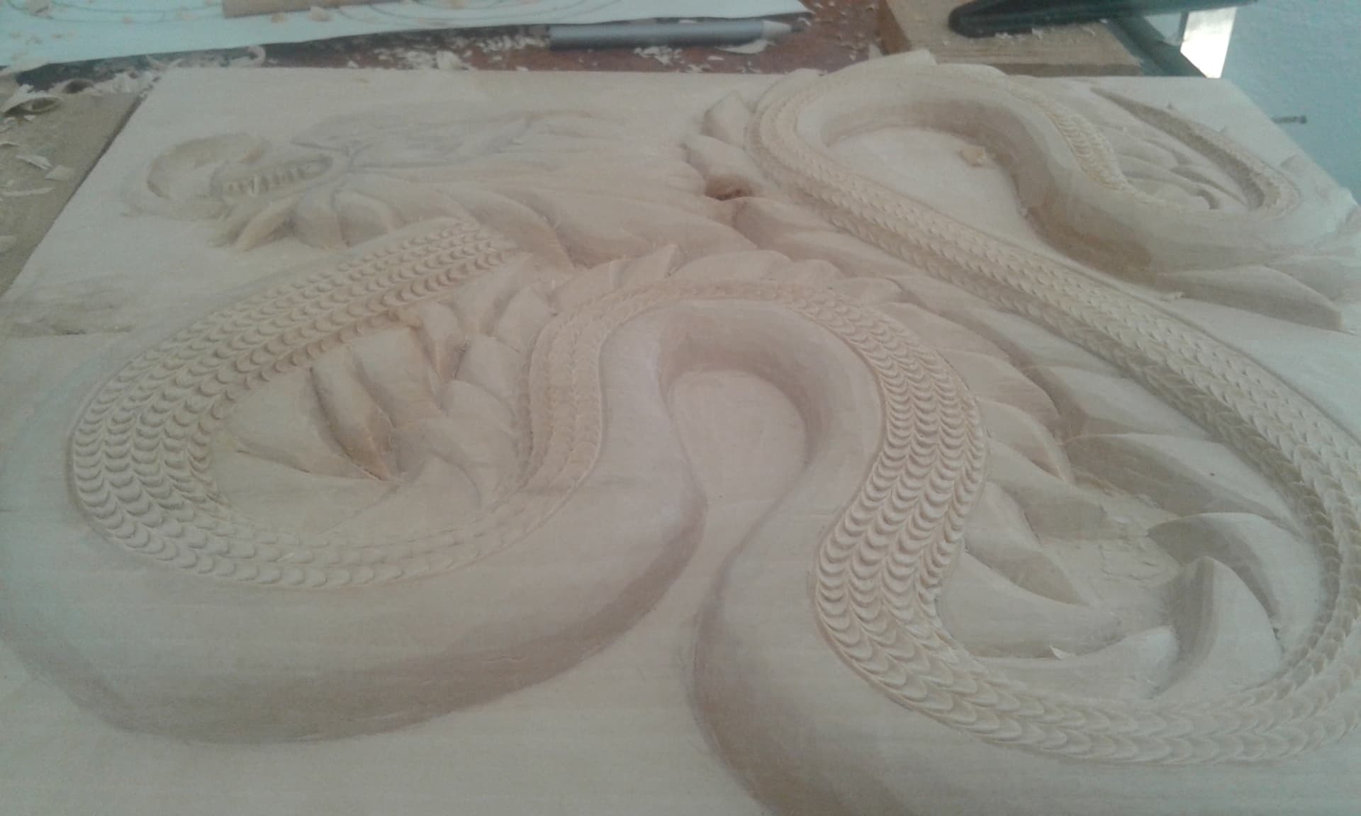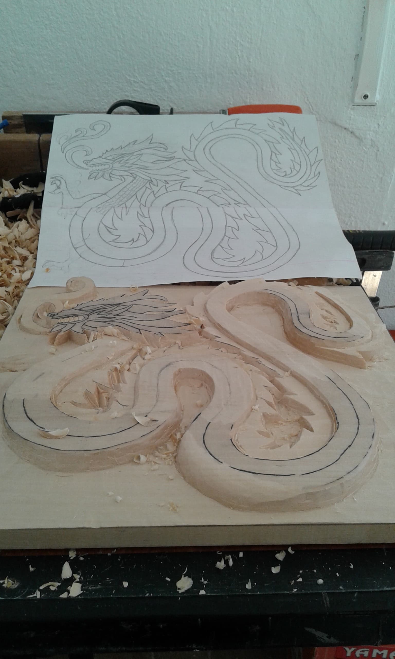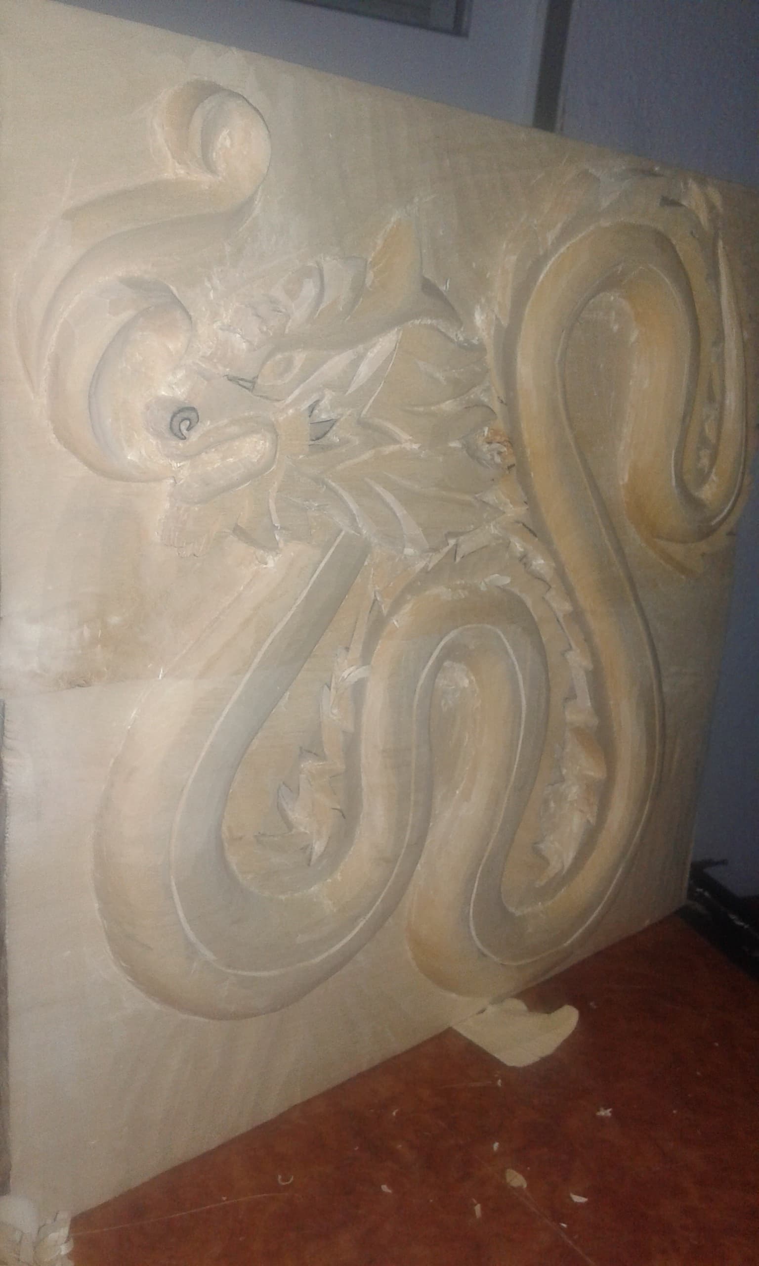 Ta muy chulo, te recomendaría teñirlo con brocha y limpiar con trapo antes de barnizarlo o patinarlo para oscurecer un poco los recovecos y que resalte más el relieve. Aunque eso es para gustos