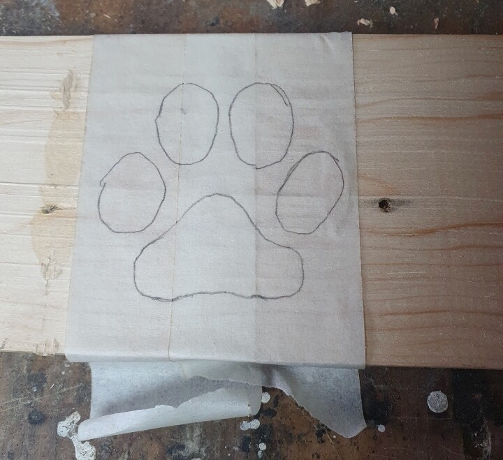 Es la primera vez que hago un vaciado priemero hice una prueba , como ha sido todo muy rápido, calque la huella directamente desde la pantalla del teléfono a cinta carrocero y la pegue en la madera…