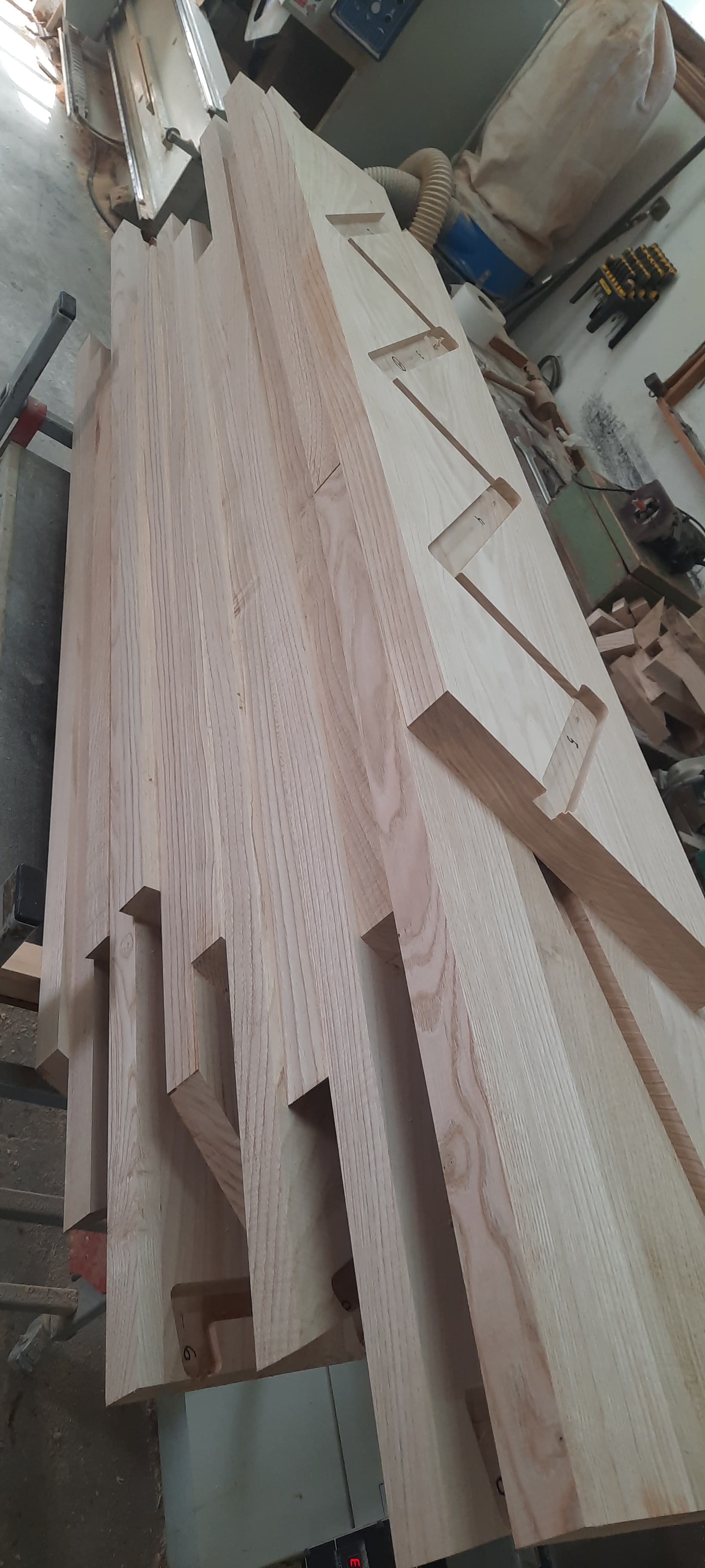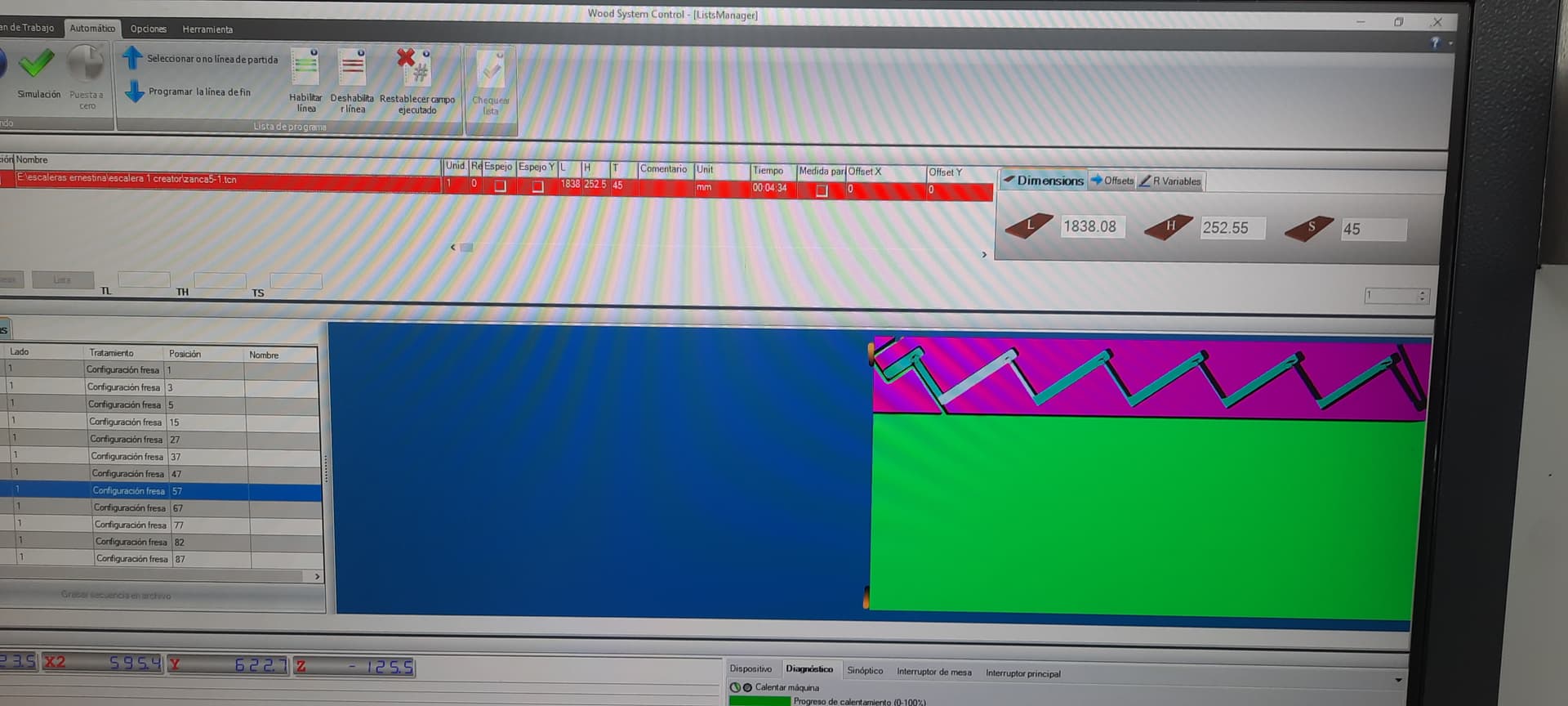 Las escaleras siempre me han gustado y en estos 20 años que llevo en mi taller hemos hecho varios centenares de escaleras, con una clara evolucion. Mis primeras dos escaleras las hice para mis padres. Vas aprendiendo de tus errores, haciendo pruebas para mejorar cosas, aprendiendo de compañeros etc… nada que ver las primeras escaleras con las ultimas y siempre siendo consciente de que todo lo que se hace se puede mejorar. En estas escaleras me di cuenta que en algunas zancas habia programado la direccion de avance del mecanizado al reves, por lo que la fresa al pasar de la huella a la tabica, me saltaba una esquinita, nada, unos milimetros, pero me dejaba unos pequeños agujeros en la esquina al meter el paso. En 15 dias tengo que hacer otra y ya no me va a pasar eso…